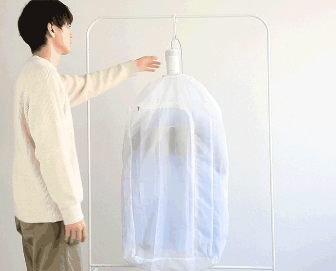 ドアやハンガーラックにつり下げ、カバーをつけるだけ。