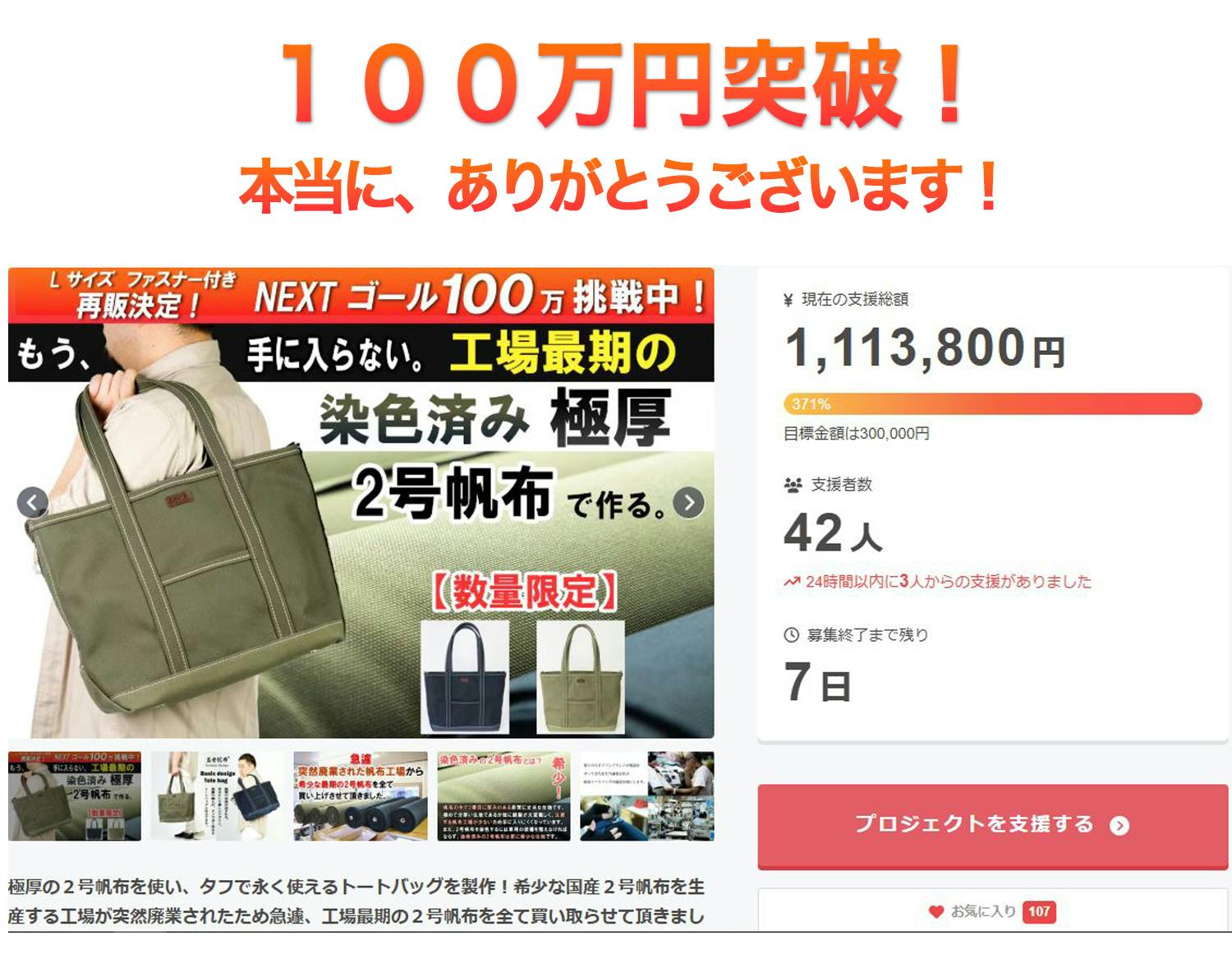 皆さまの温かいご支援のおかげで、支援総額100万円を突破いたしました!