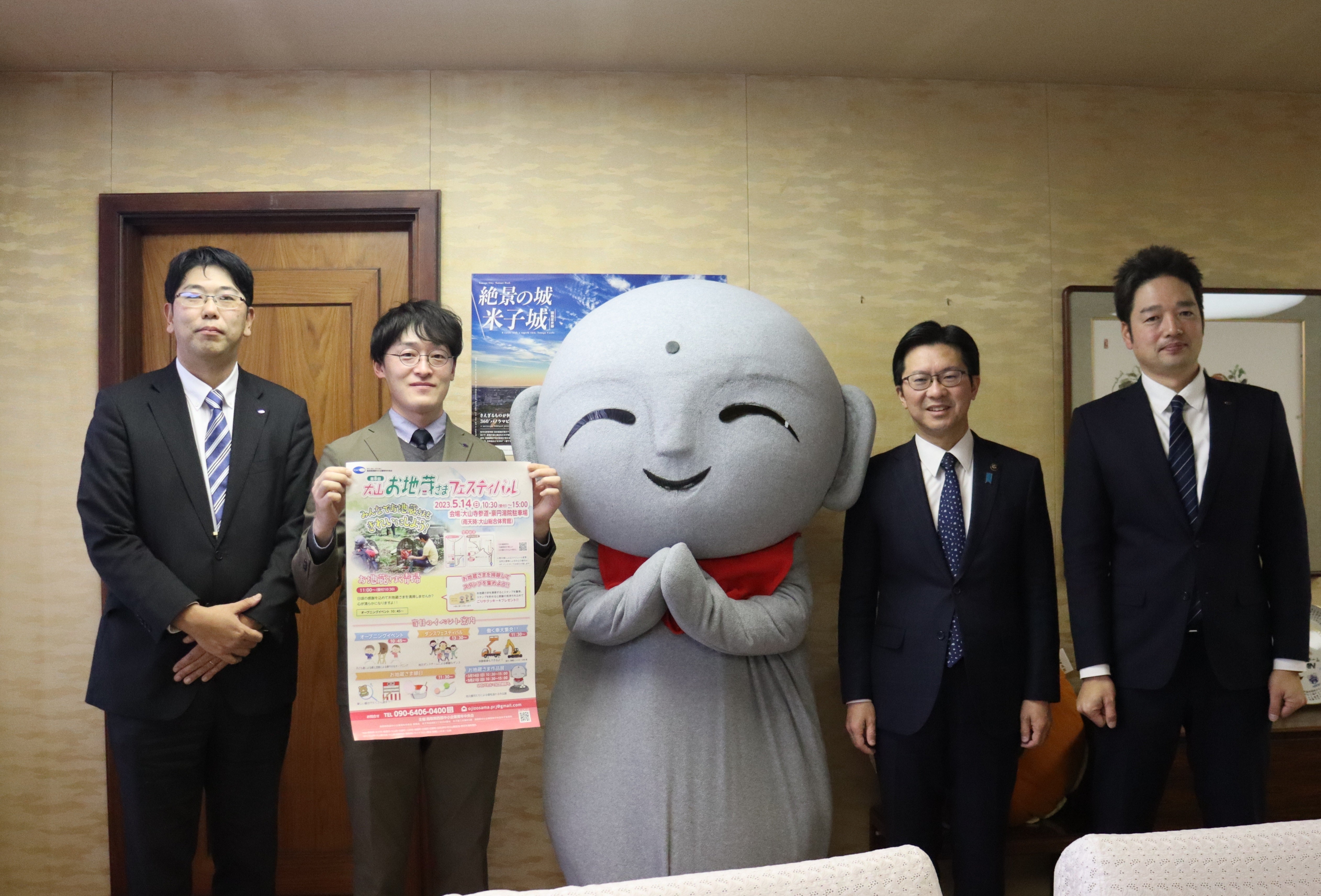 令和7年1月第10回お地蔵さまフェスティバルの開催が決定し、米子市長表敬訪問に行って参りました。昨年の成功を大変喜んでくださり、今回の開催でも、米子市の後援をはじめご協力いただき、当日のイベント会場にもお越し下さる予定です。