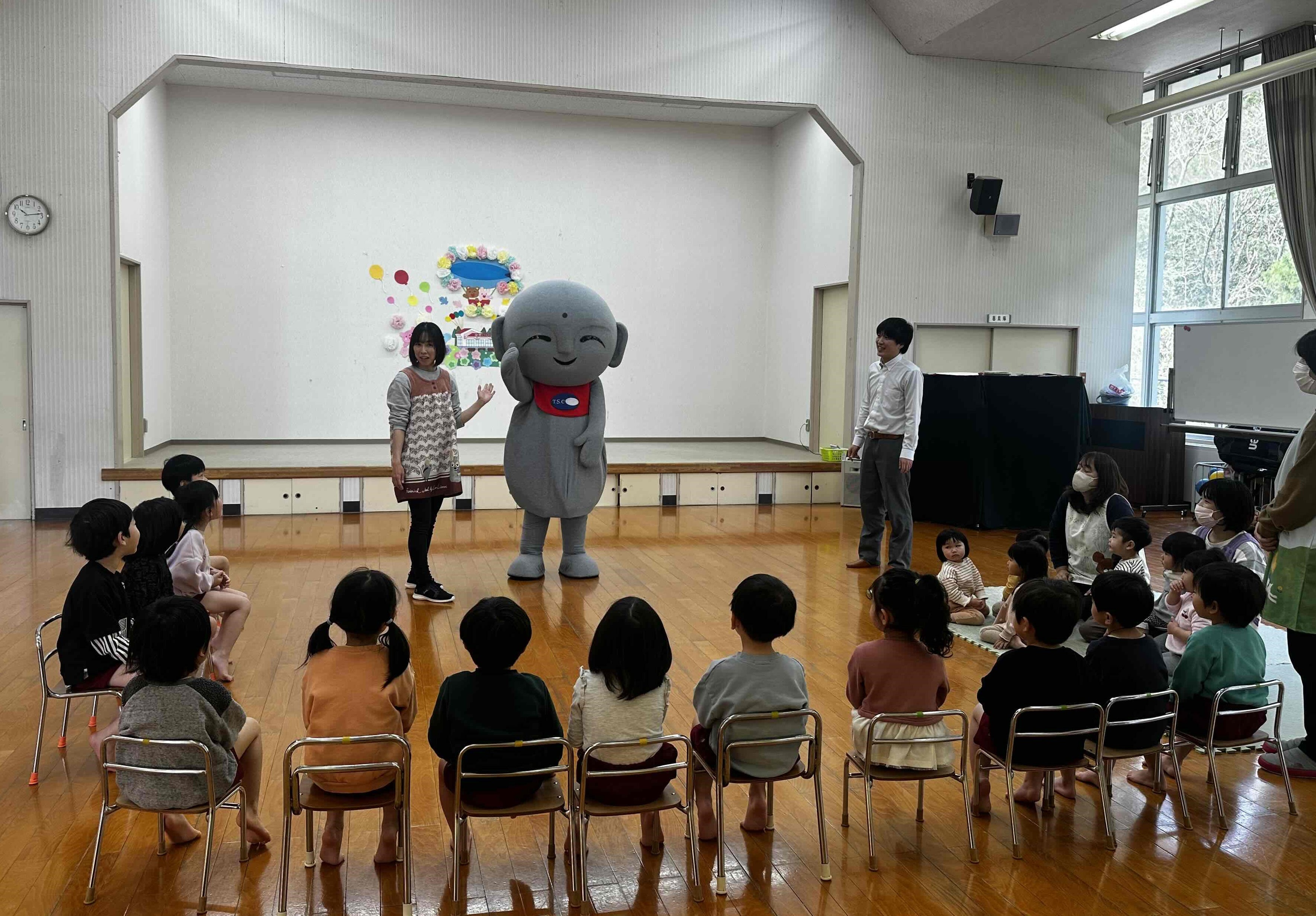 令和7年4月にこっとさま、大山町の保育所のお誕生日会に招待いただきました。毎年「お地蔵さま作品展」でご協力いただいている保育所さんで、毎年ご招待いただいており、子どもたちはとても楽しみにしてくれているそうです。質問タイムやダンス披露など、楽しい時間を過ごしました。今年もたくさんの作品協力、ありがとうございました。当日はイベント会場で会いましょう♪