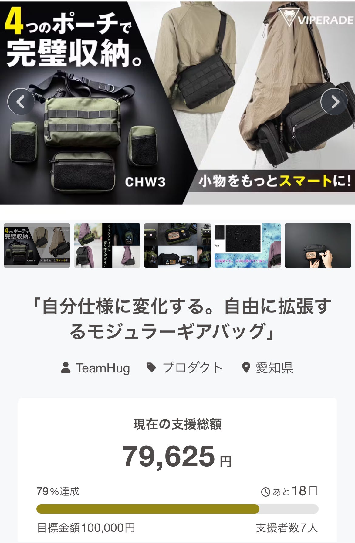 7名の支援者の方のおかげで79%まで行く事ができました。誠に有難うございます。目標達成まで残り21%です!引き続き応援、拡散宜しくお願い致します。