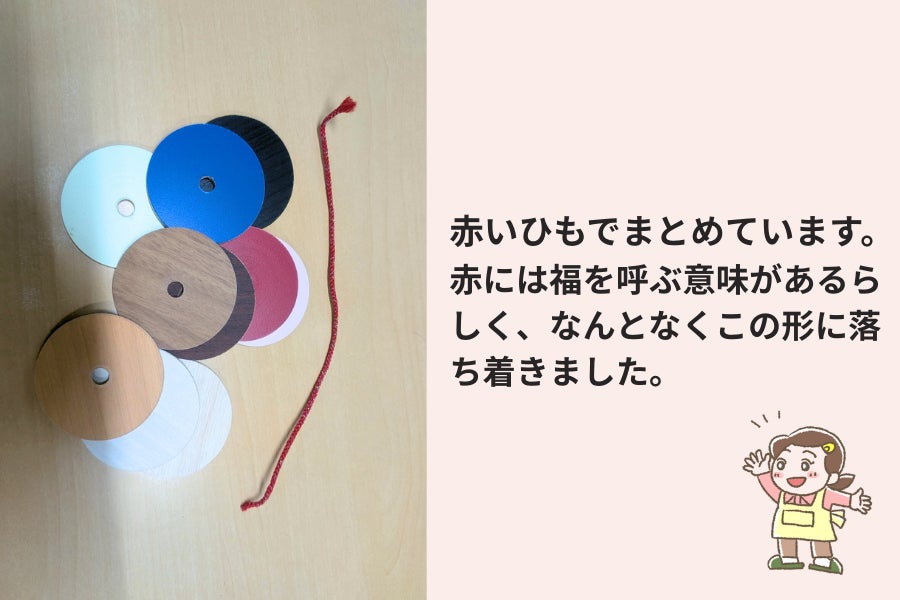 10色を赤い紐で束ねており、縁起が良い(かな?)。