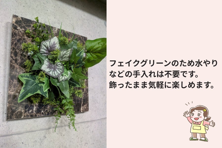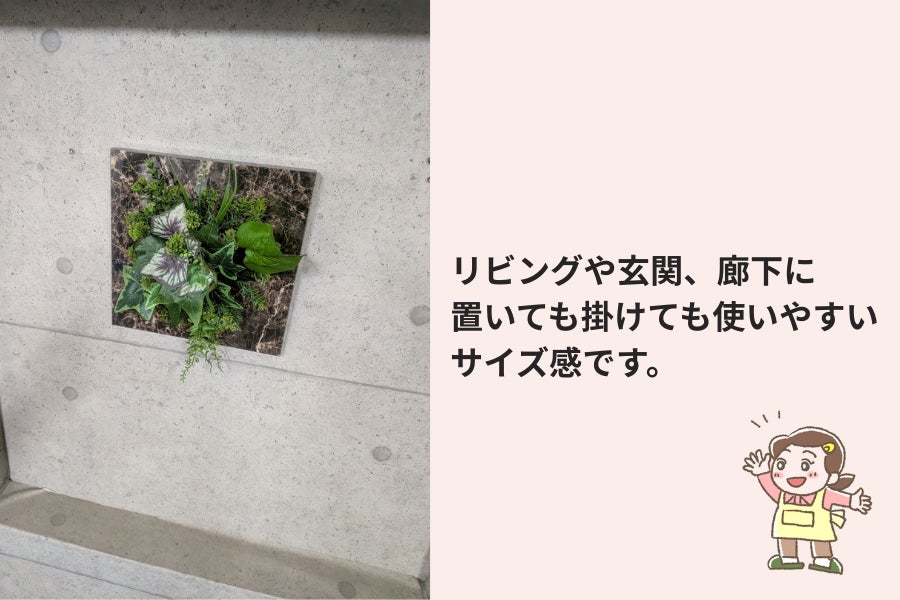 大理石柄パネル(白)に立体グリーンを添えた壁掛けパネル。
