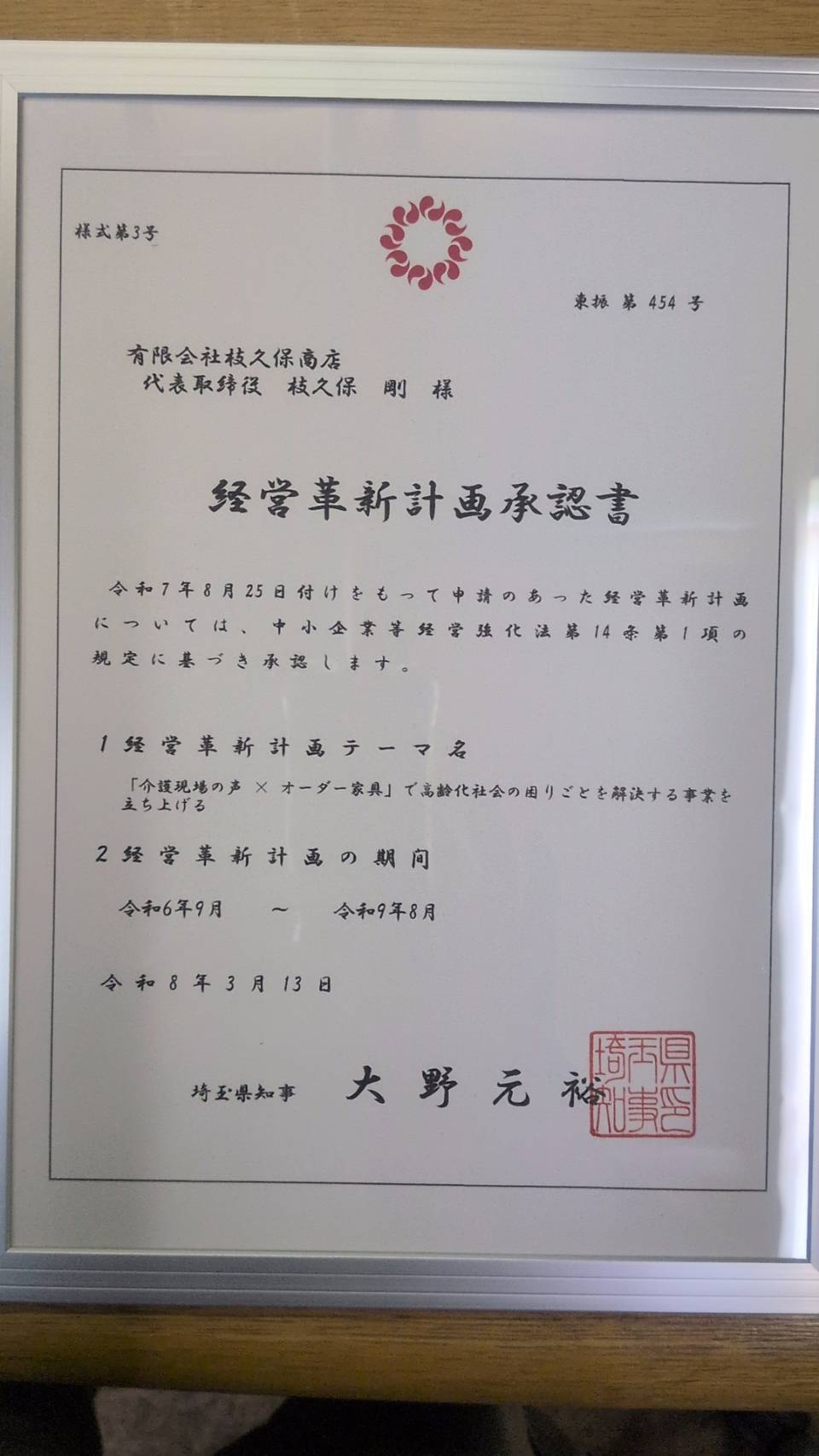 埼玉県の「経営革新計画」が承認されました。