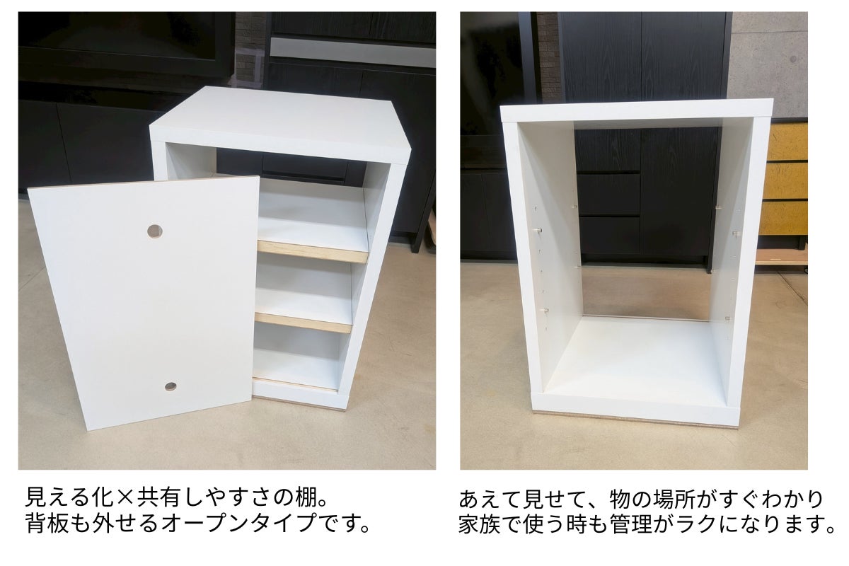 | タイプ | オープン棚/引出し型/扉・戸型 | 変形や改造もOK! |