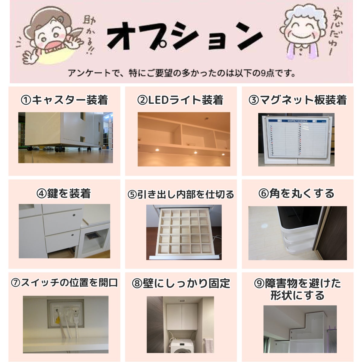 | オプション | キャスター・電灯・マグネットボードなど | 個別の要望に応じます |