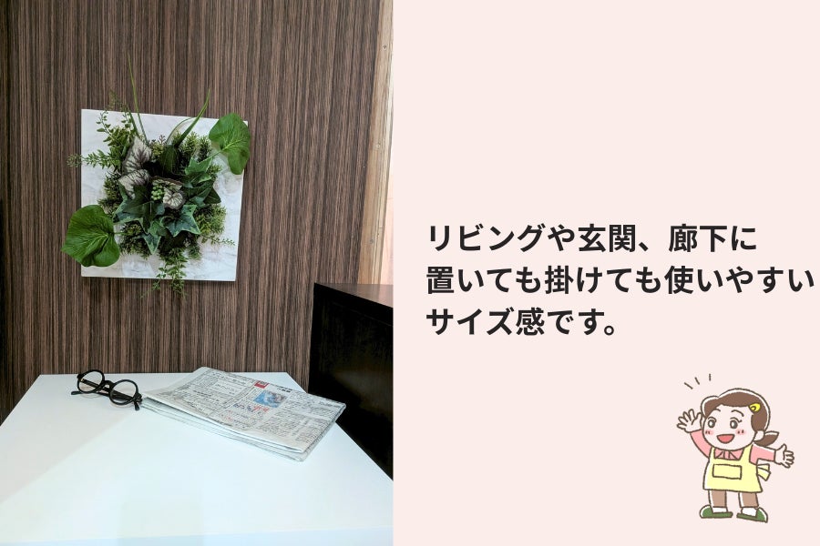 大理石柄パネル(白)に立体グリーンを添えた壁掛けパネル。