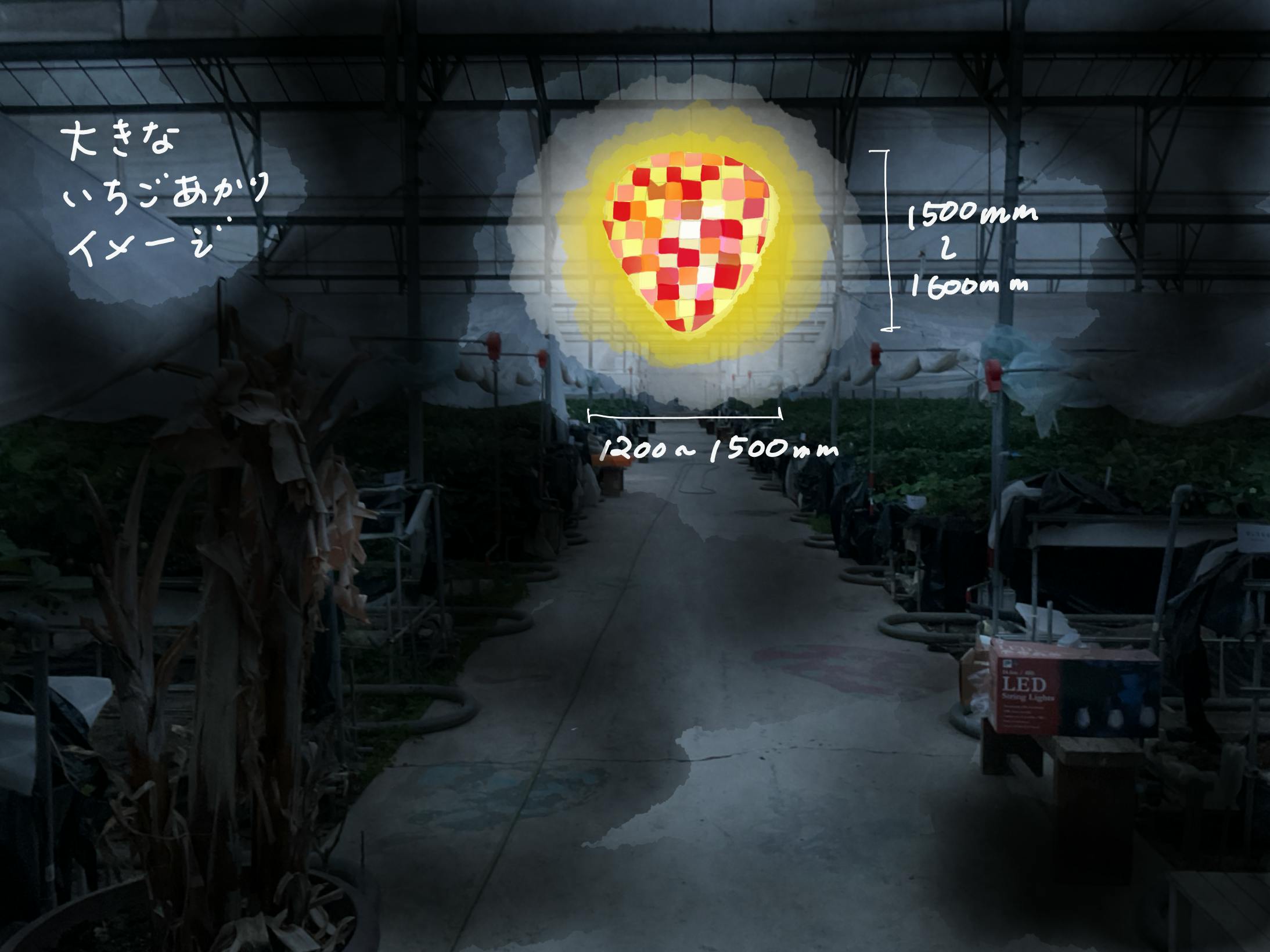 いちごハウスに大きなぼんぼりが浮かんでいるのはやく見たい٩(๑òωó๑)۶