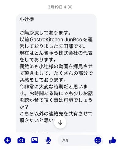 クラウドファンディングの準備をしている頃、フェイスブックにメッセージが届きました。