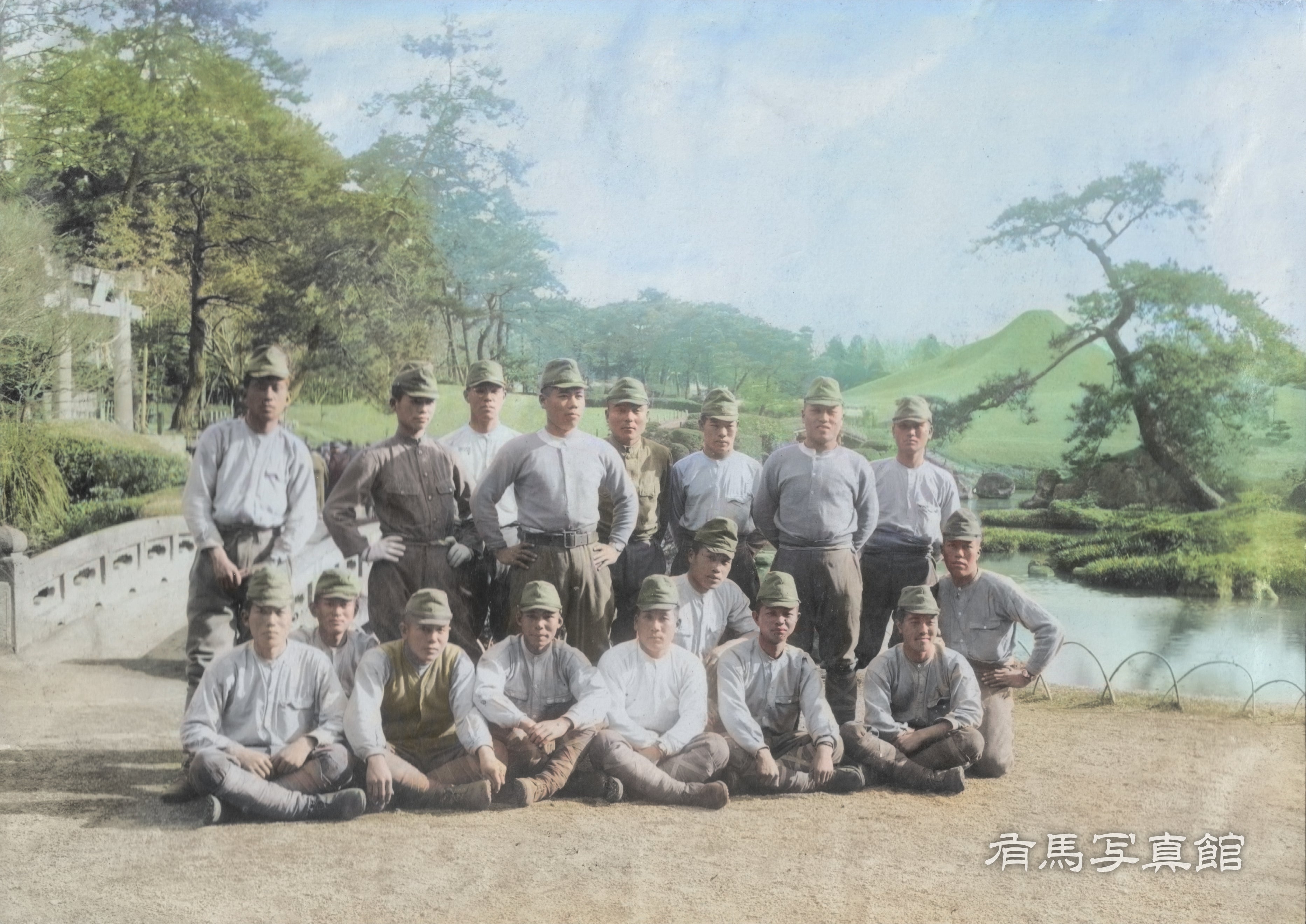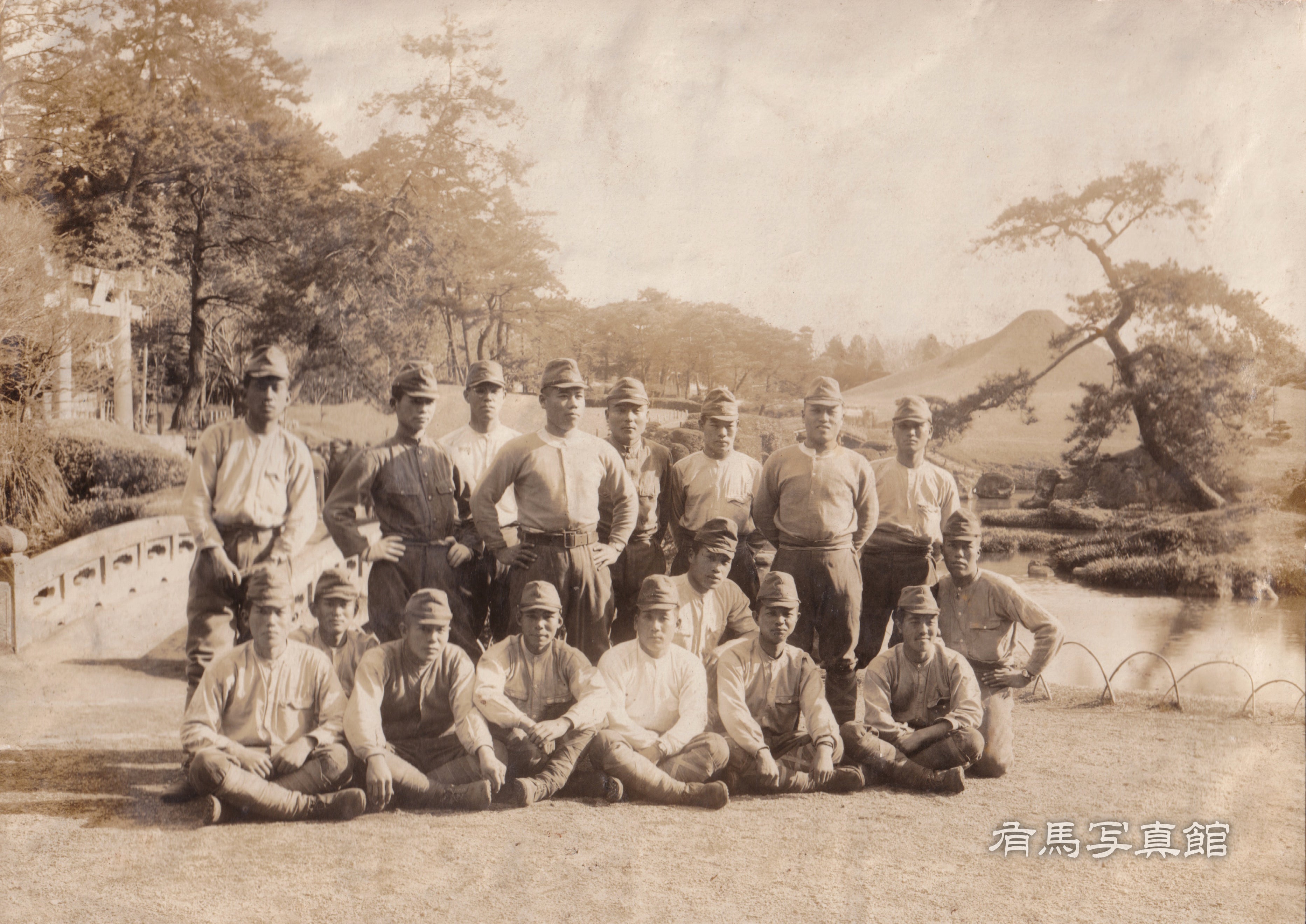 祖父が徴兵されて戦地に行く前に熊本市の水前寺公園にて撮られた記念写真です。