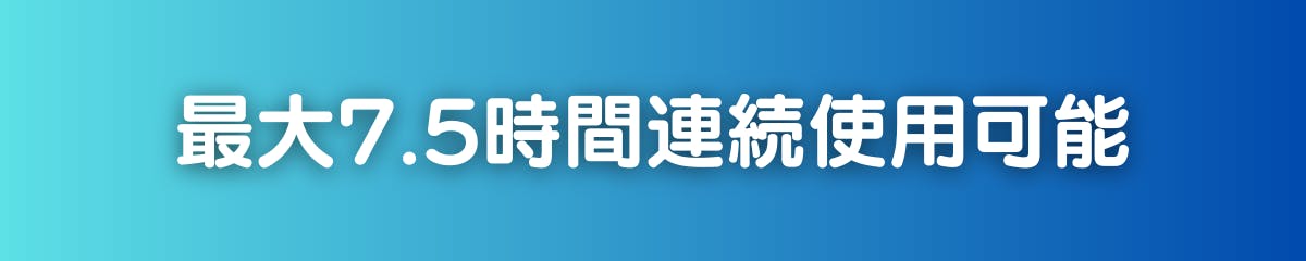 A. フル充電時に最大7.5時間の連続使用が可能です。ただし、使用する風量によって稼働時間は変動します。