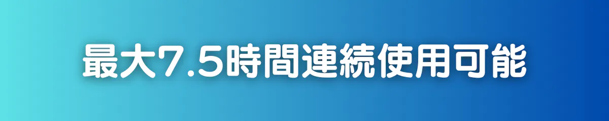 A. フル充電時に最大7.5時間の連続使用が可能です。ただし、使用する風量によって稼働時間は変動します。