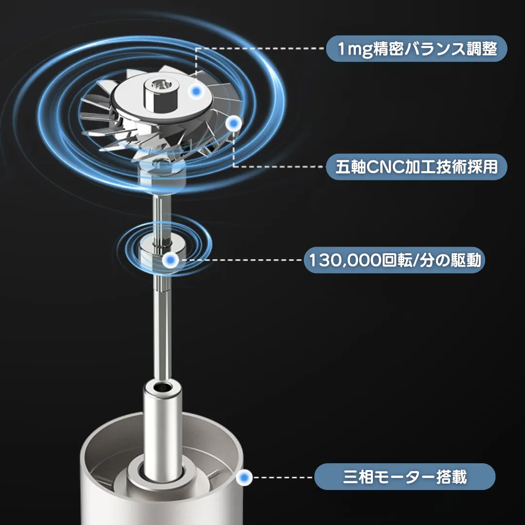 モーター:三相ブラシレスモーター(最大回転数130,000rpm)