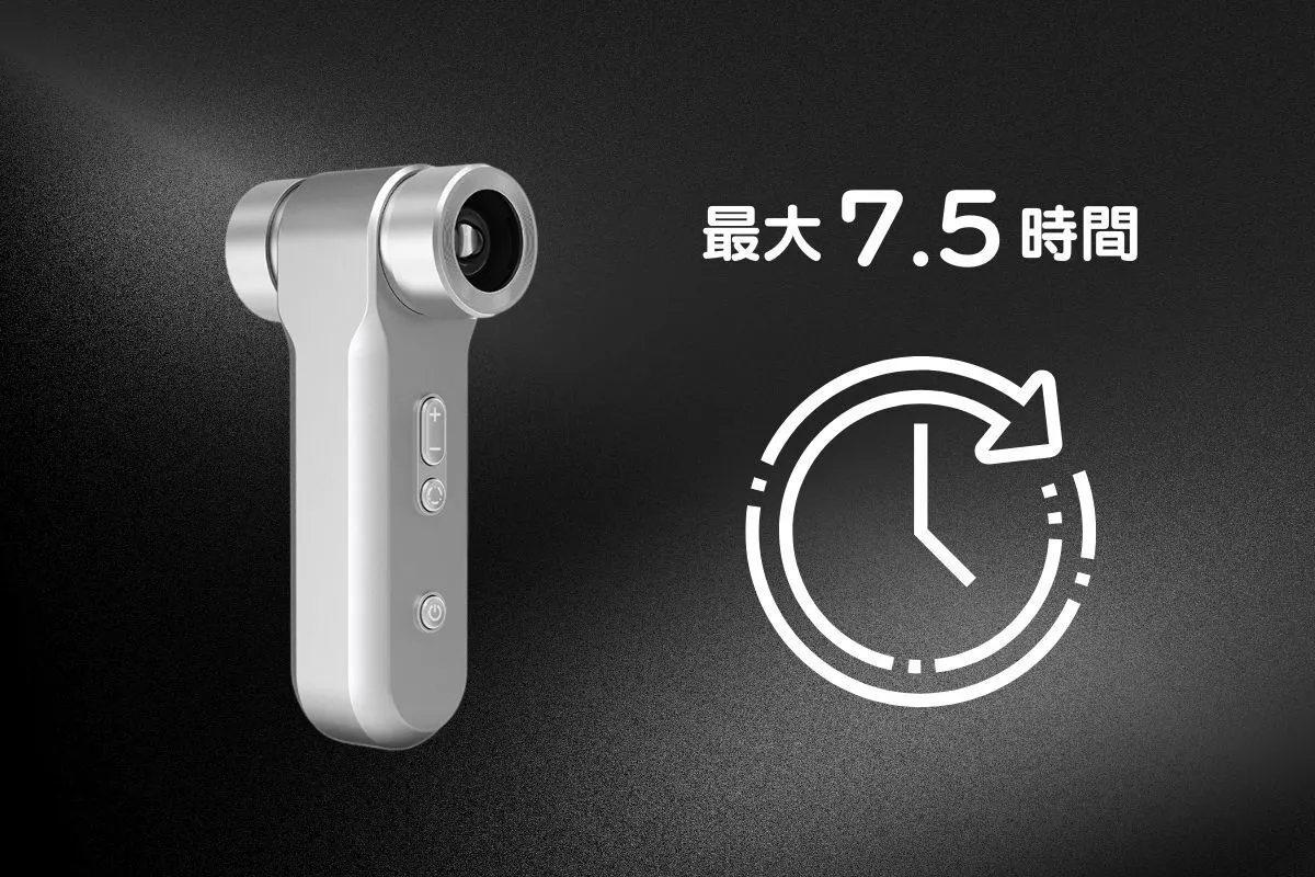 ・本製品は最大7.5時間の連続使用が可能 ですが、長時間使用すると本体が熱を持つ場合があります。その際は一度電源を切り、本体を冷ましてから再使用してください。