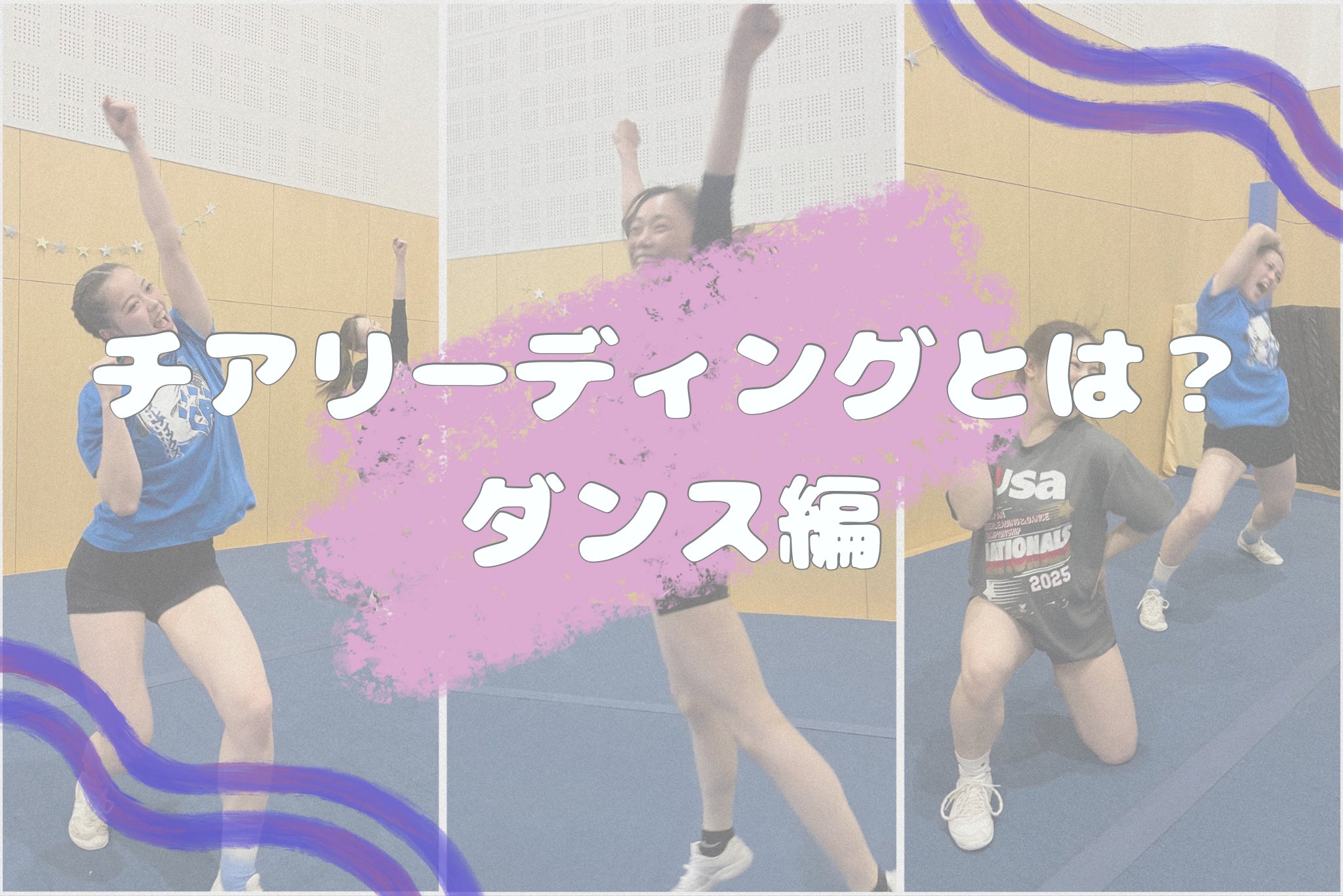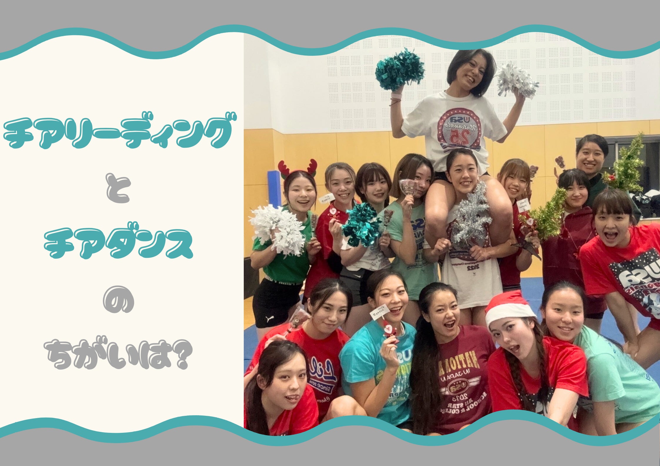 今回はチアリーディングとチアダンスの違いについて解説していきます!チアリーディングとチアダンスという言葉があるのは知っているけれど、この2つって同じスポーツなの?何が違うの?と思っている方もいるのではないでしょうか。実はこの2つのスポーツ、共通点は多いけれど違うスポーツなんです!チアリーディングについては一つ前の活動報告に掲載されている内容どおり、スタンツなどのアクロバットな演技を組み合わせたパフォーマンスを行います。そんなチアリーディングから派生して生まれたのがチアダンスです!チアリーディングはアクロバットな演技がメインなのに対し、チアダンスはチアリーディングのダンス部分に特化しているという違いがあります。このように、この2つのスポーツはよく一括りにされがちですが演技の内容には大きな違いがあるんです。上記のように、この2つのスポーツは演技内容としては違うスポーツですが多くの共通点もあるんです!今回はその中から3つ、紹介します。1つ目は競技時間です。大会の部門などにもよりますが、一般的にはチアリーディングもチアダンスも競技時間は2分〜2分半です。決められた短い時間でいかに完成度の高いパフォーマンスができるかが求められます。2つ目は柔軟性です。空中で足を180度以上開脚したり、身体を大きくそらせたり、しなやかで美しい動きを見せるために求められます。また、怪我の予防のためにも柔軟性はとても大切です。3つ目はチアスピリットです。チアスピリットとは、見ている人を笑顔にし、励まし応援する精神を持つことです。他のスポーツとは違い応援を目的としたスポーツなので、観客、選手、仲間、そしてライバルも応援します。チアリーディングとチアダンスの違いはつかめたでしょうか。(余談ですがチアダンスは日本でのみ言われる名称、世界ではポンやパフォーマンスチアと呼ばれています。)まだあまり知られていないチアリーディングというスポーツについて、少しでも知っていただけたら幸いです。次はチアリーディングの演技を構成している4つの要素について解説します!次回もお楽しみに!