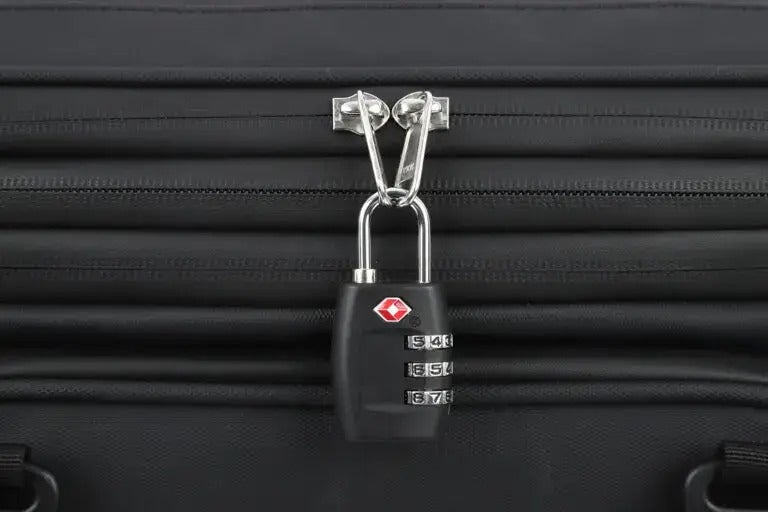 メイン開口部(2か所)には、TSAダイヤルロック式の南京錠が2個付属。預け入れの際は、施錠することができます。