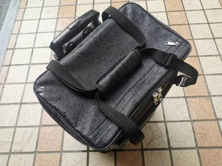 A:撥水生地と止水ファスナーを採用しているため、軽い雨であれば問題ありませんが、長時間の豪雨や水没にはご注意ください。