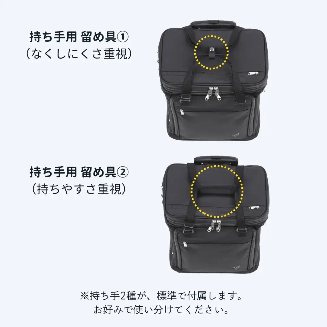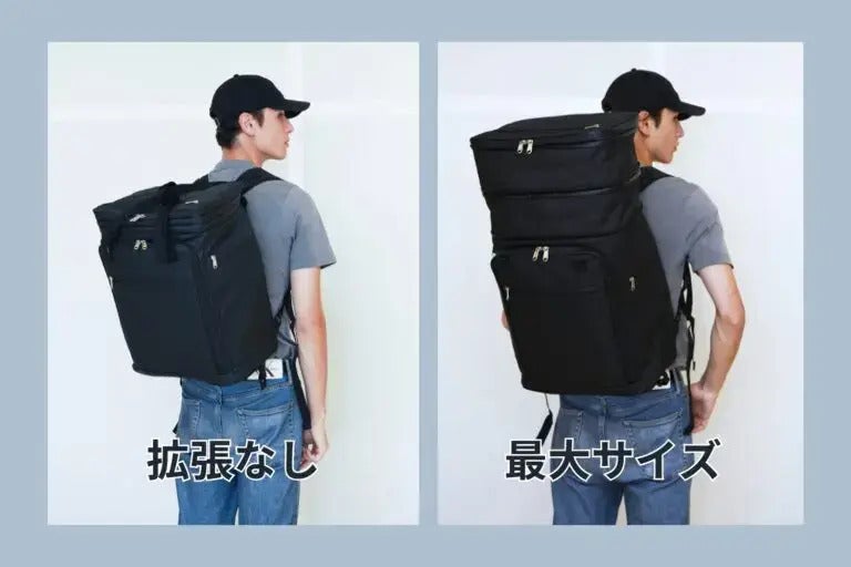 訪問先に手土産を渡し終えたら、最小モード。出張先でおみやげを買ったら、また拡張。荷物の量に合わせて、サイズをフィット。