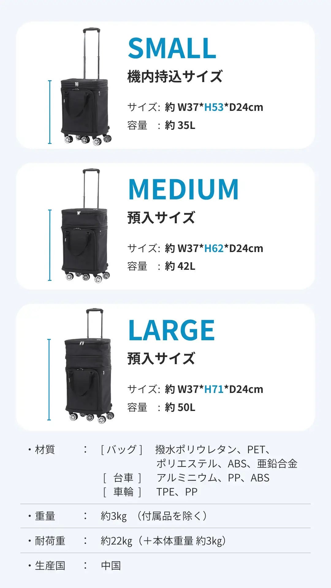 大容量サイズ(50L):5泊6日の旅行に最適。