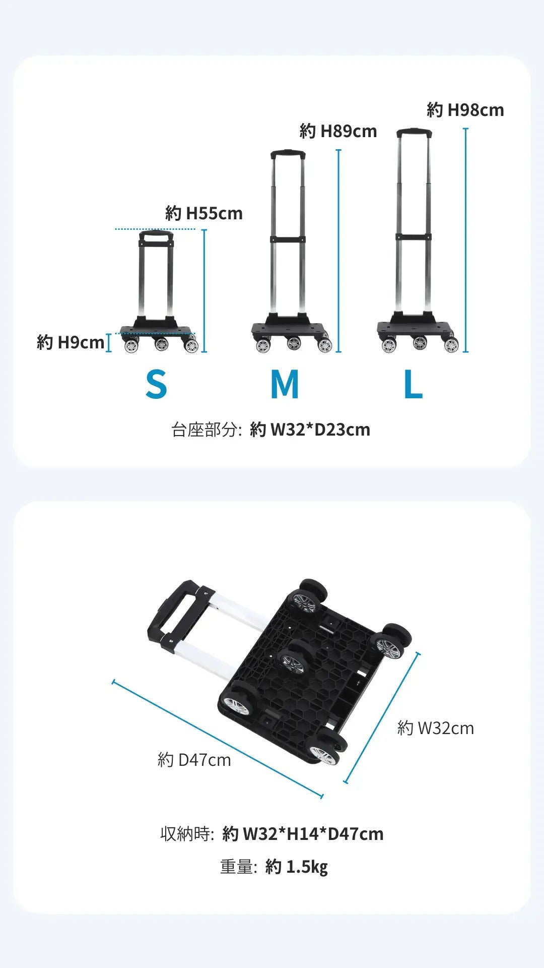 カートは軽量で、折りたたんでコンパクトに収納することが可能。