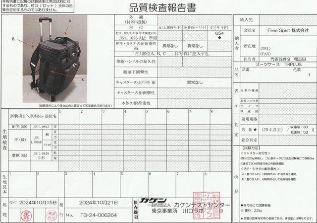 ※[カケンテストセンター] キャスター走行試験 実施済: