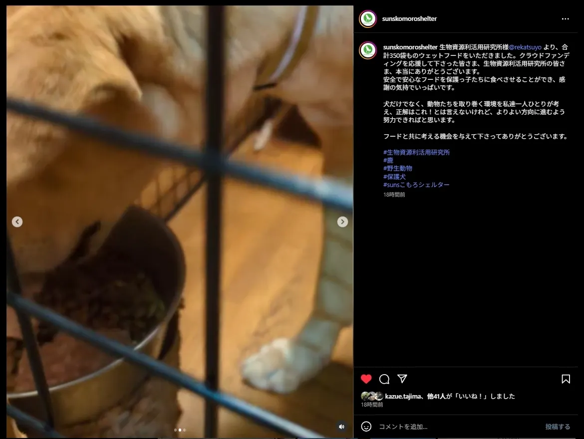Sun's こもろシェルターに250袋のウエットフードをお送りしました