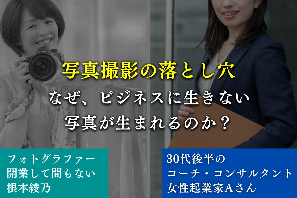 今から3年前のことです。私がカメラマンとして事業を始めてまだ間もない初夏のある日のことでした。30代後半の女性起業家Aさんから写真撮影の相談をいただけたのです。