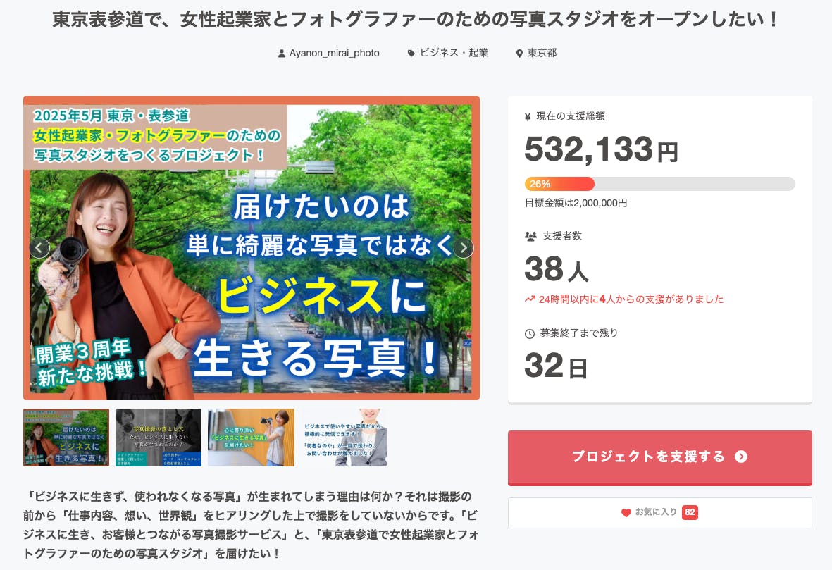 東京表参道で、女性起業家とフォトグラファーのための写真スタジオをオープンしたい!