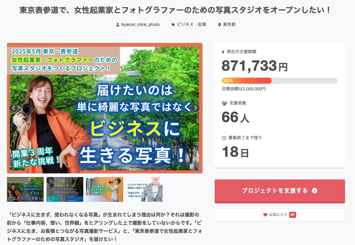 東京表参道で、女性起業家とフォトグラファーのための写真スタジオをオープンしたい!
