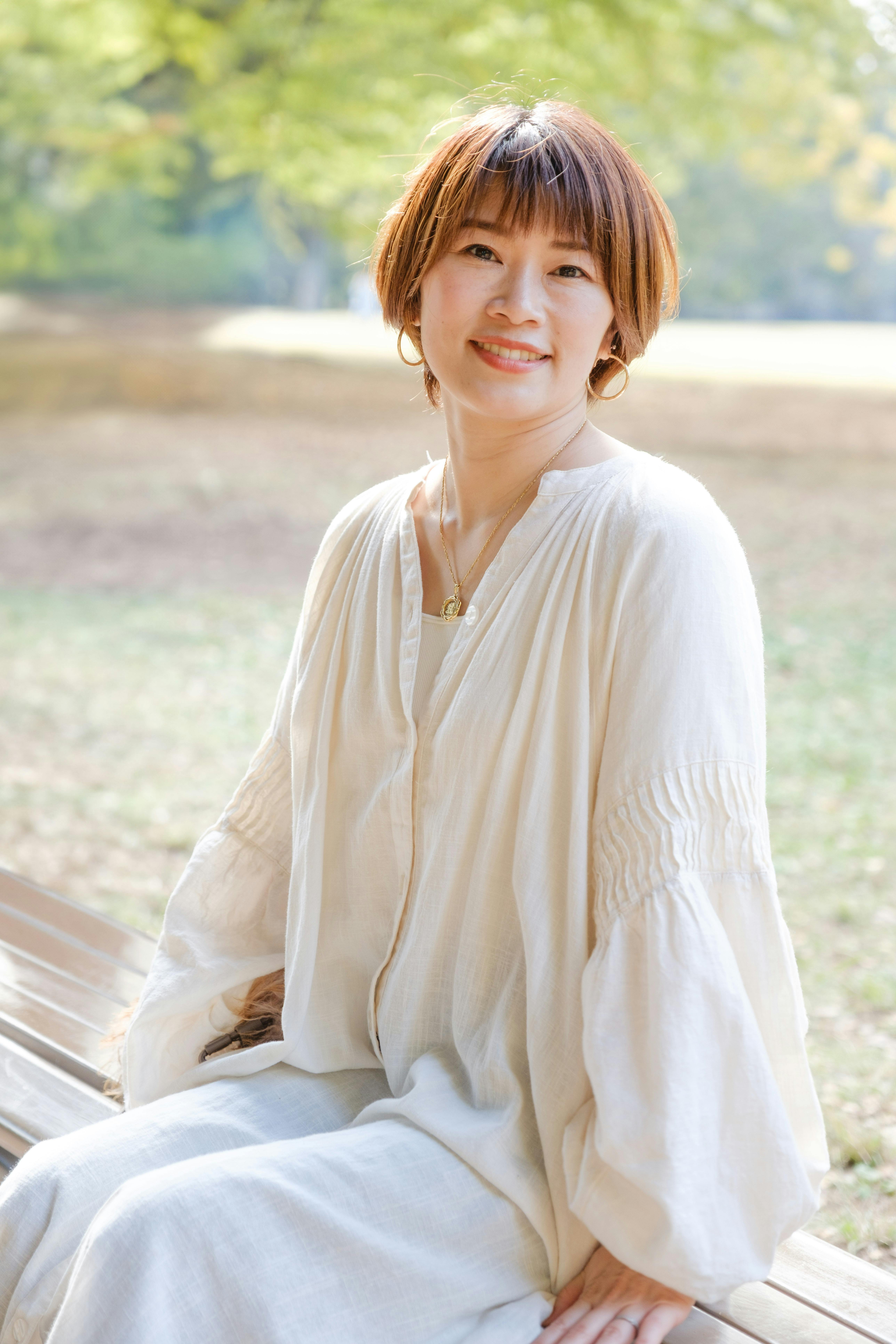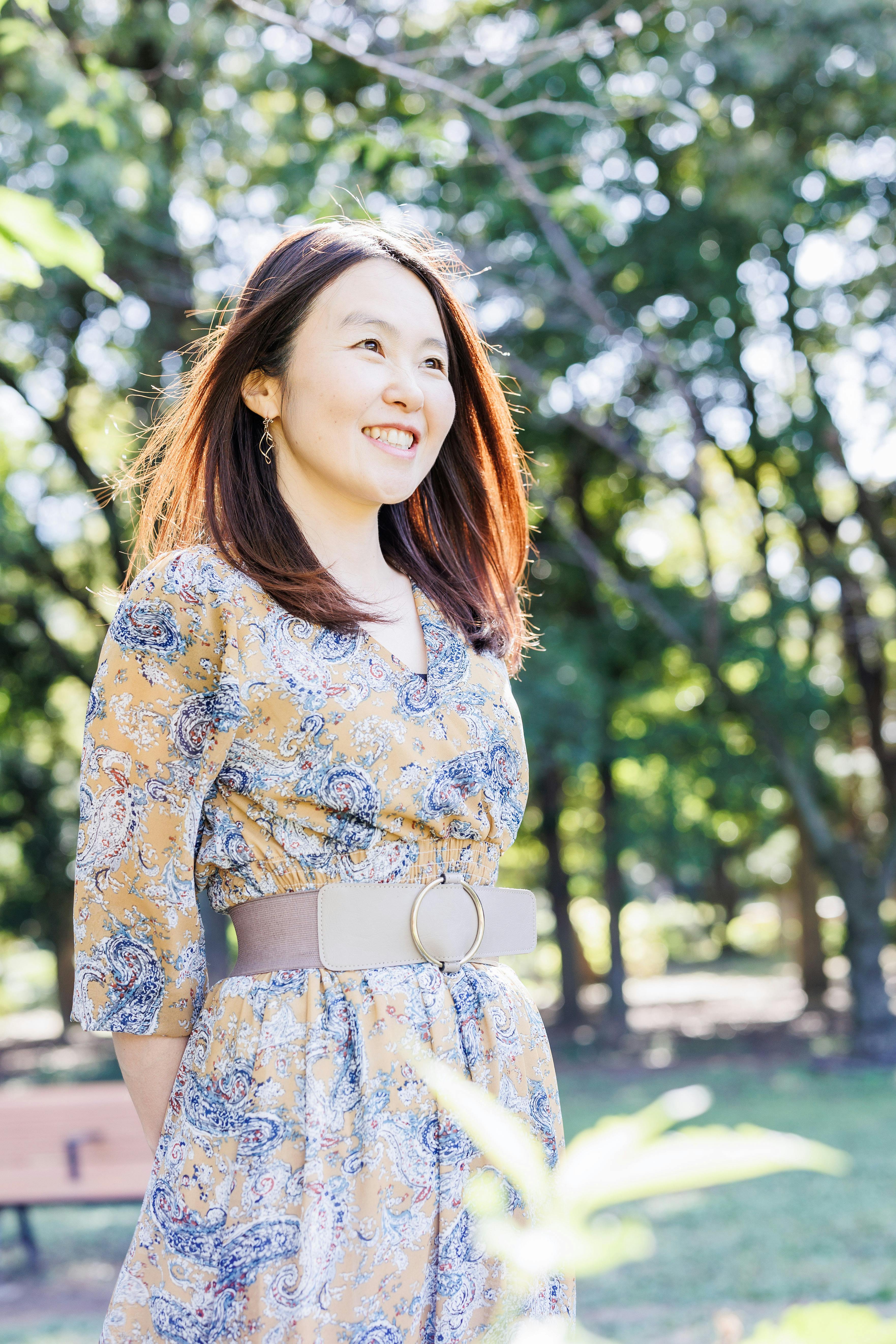 温かみのある親しみやすいイメージなら、自然光の中で優しい笑顔を