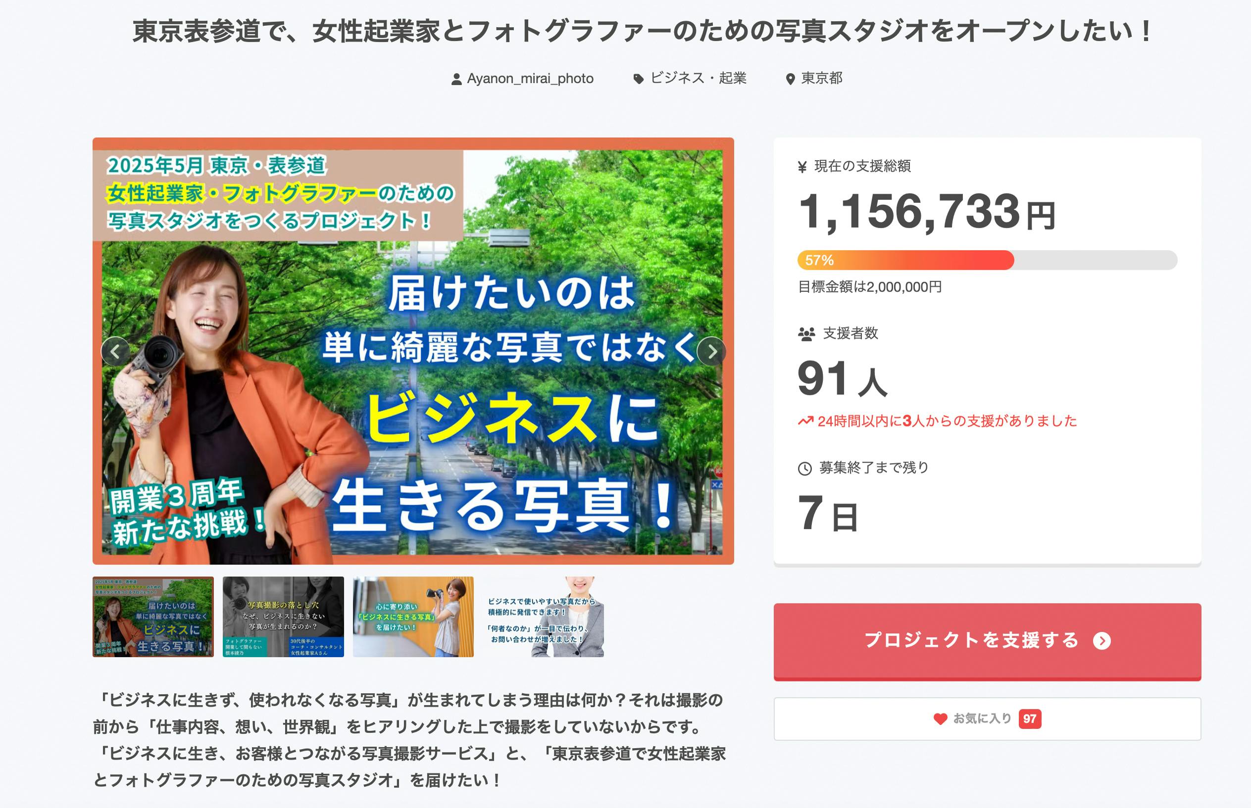 東京表参道で、女性起業家とフォトグラファーのための写真スタジオをオープンしたい!