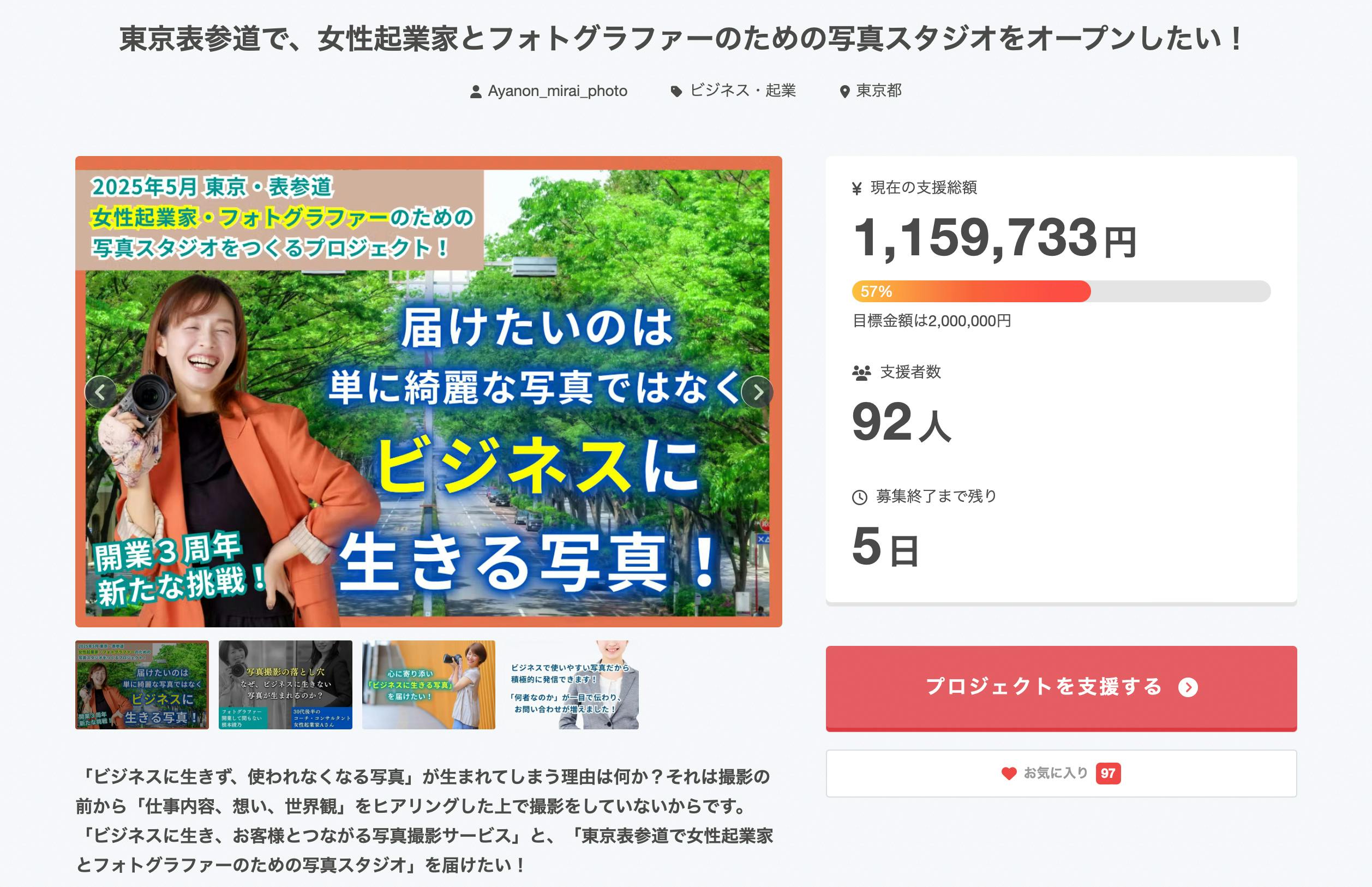 東京表参道で、女性起業家とフォトグラファーのための写真スタジオをオープンしたい!