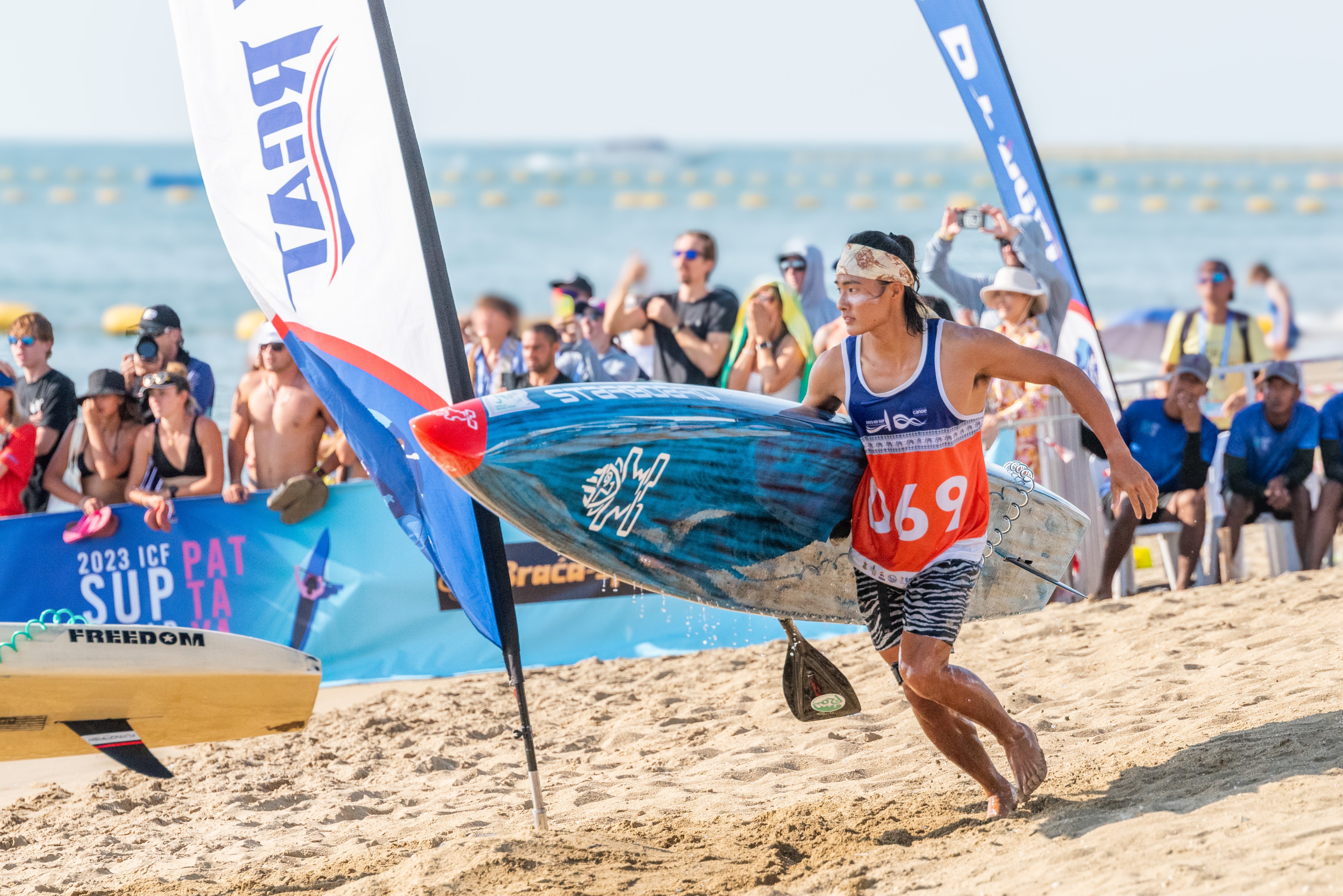 SUP(スタンドアップパドルボード)レース世界チャンピオンの田口 頼と申します。12歳からこの競技を始め、高校卒業と同時にプロ選手として今まで活動してきました。そして昨年20歳で出場した、2024年ISA世界選手権では史上初の三冠(ロングディスタンス優勝、テクニカル優勝、チームリレー優勝)を達成し、12歳の頃からの夢でもあった世界チャンピオンになる事が出来ました。