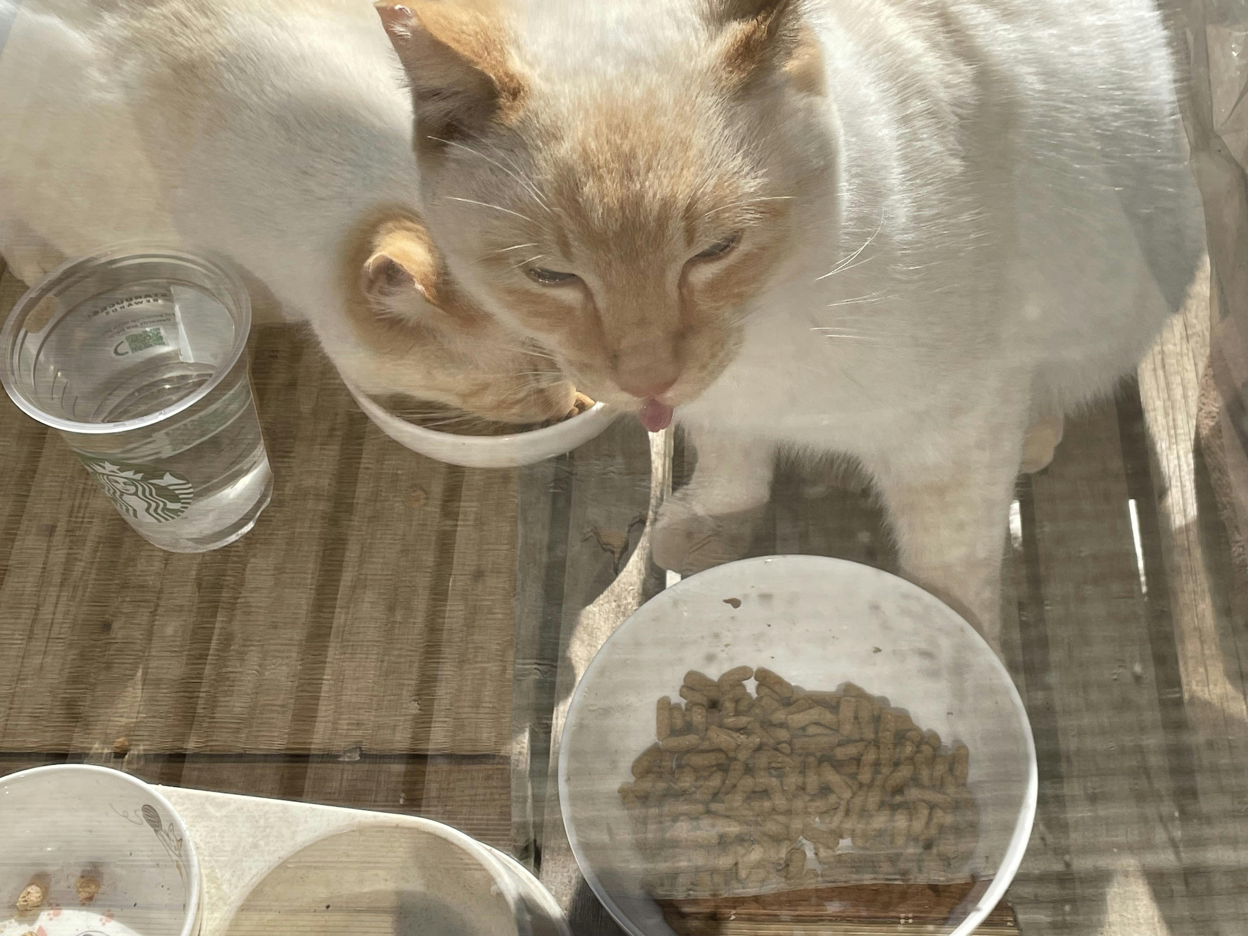 2026/02/22 14:38ご支援くださった皆様、温かいご支援を誠にありがとうございます(⁎ᴗ͈ˬᴗ͈⁎)♡おかげさまでニャンコ達みんな元気に過ごしています。先日、イオンのお客様感謝デーを狙って、ニャンズのご飯を購入させて頂きました♡(*´▽`人)モチくんもモツくんもクリちゃんもビビちゃんもしっかり食べて、体力作りしています(*^^*)チャトくんも毎日来て、ご飯の催促をしてくるのですが、チャトくんは自分のご飯の器にご飯が入ってるのに、何故かビビちゃんやクリちゃん、モツモチ兄弟のご飯を盗みます⋯(._.`)そして、私の足元に纏わりついてくるのに、撫でようとするとシャーっとされます(´˙꒳˙ `)そして噛みつかれます( ̄▽ ̄;)チャトくんは長い間、必死で戦って来たのでしょうね(´-ω-`)中々心を開いてくれません。。。なのでビビちゃんやクリくん、モツくんもモチくんもチャトくんが来るとビビって逃げてしまいます。・*・:≡( ε:)なるべく注意して様子を見てるのですが、難しい感じです(›´-`‹ )…みなでご飯タイム♡(⊃´⤙`⊂)ŧ‹"ŧ‹"チョチョくん♡時々遊びに来ては、ビビちゃんやモチくんモツくんと一緒に遊んでいます- ̗̀( ˶^ᵕ'˶)bやっぱり兄弟!仲良しです҉*\( * ॑˘ ॑* ) もっと見る