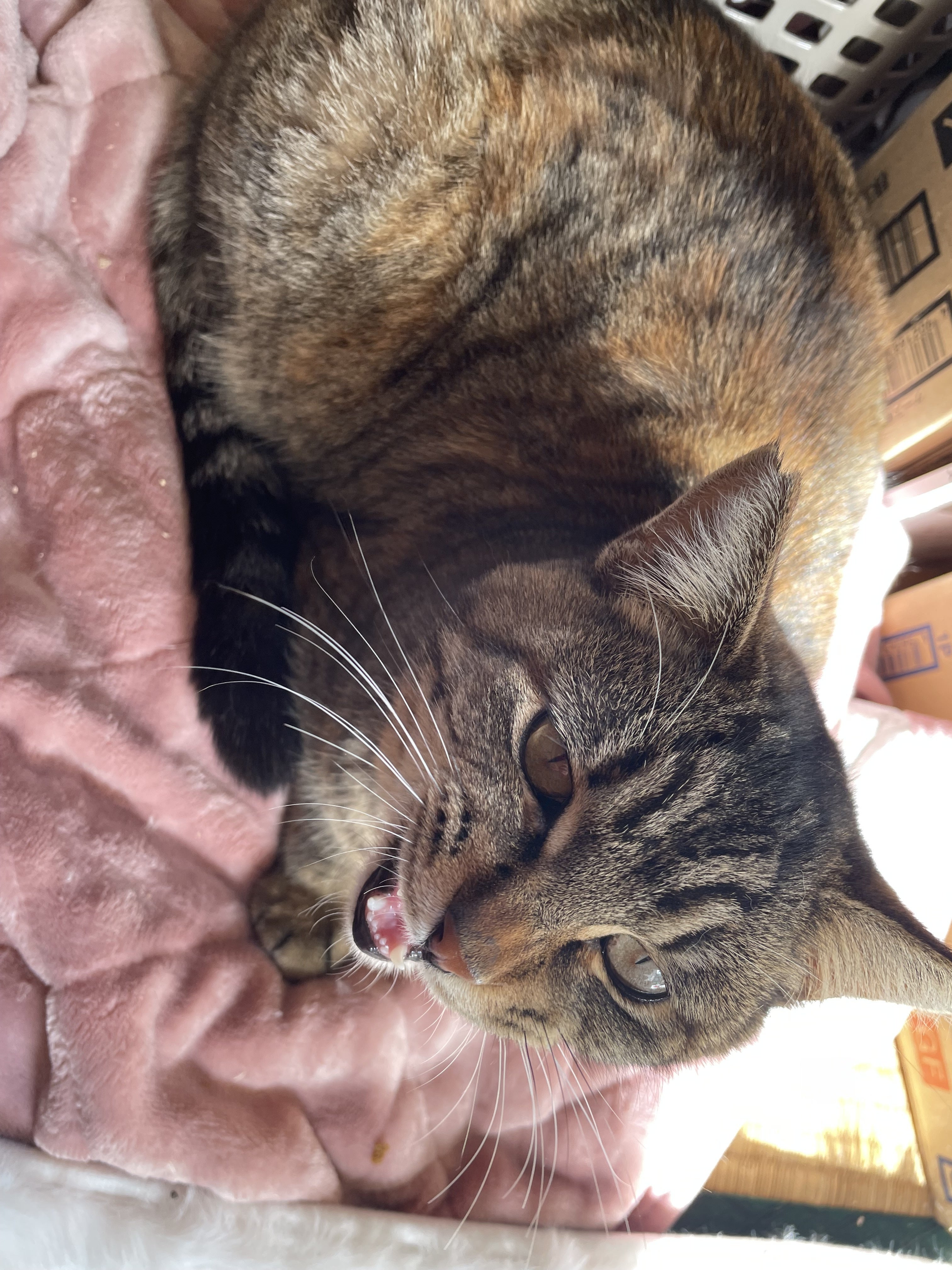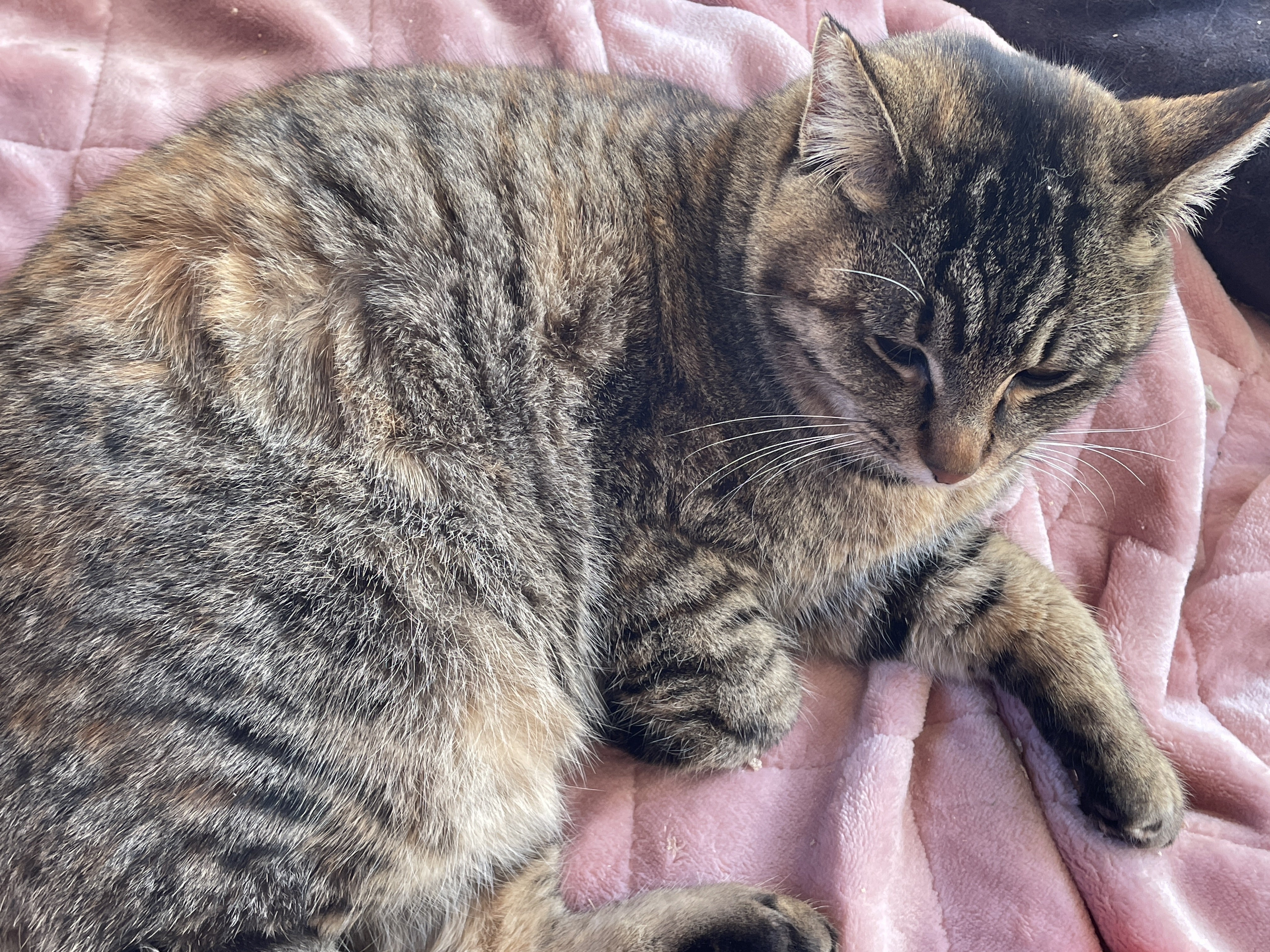 ビビちゃん太陽の日差しと毛布の柔かさがお気に入りで、モフモフしていました。簡易ハウスの中にも毛布は入れてあるのですが、雨風が入らないようにシートを覆いかぶせてしまっているせいか、太陽の日差しが入らないのがちょっと残念。