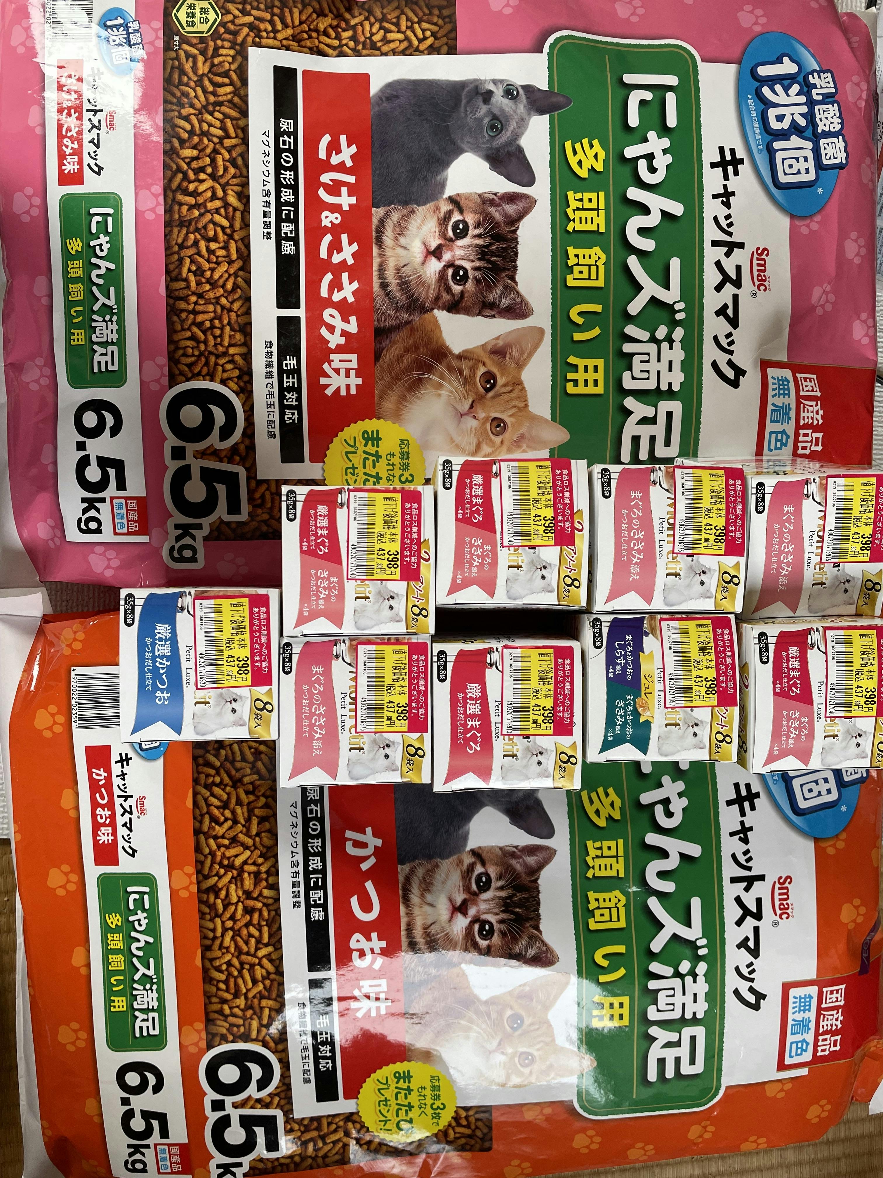 ♡おかげさまでニャンコ達みんな元気に過ごしています。先日、イオンのお客様感謝デーを狙って、ニャンズのご飯を購入させて頂きました♡(*´▽`人)