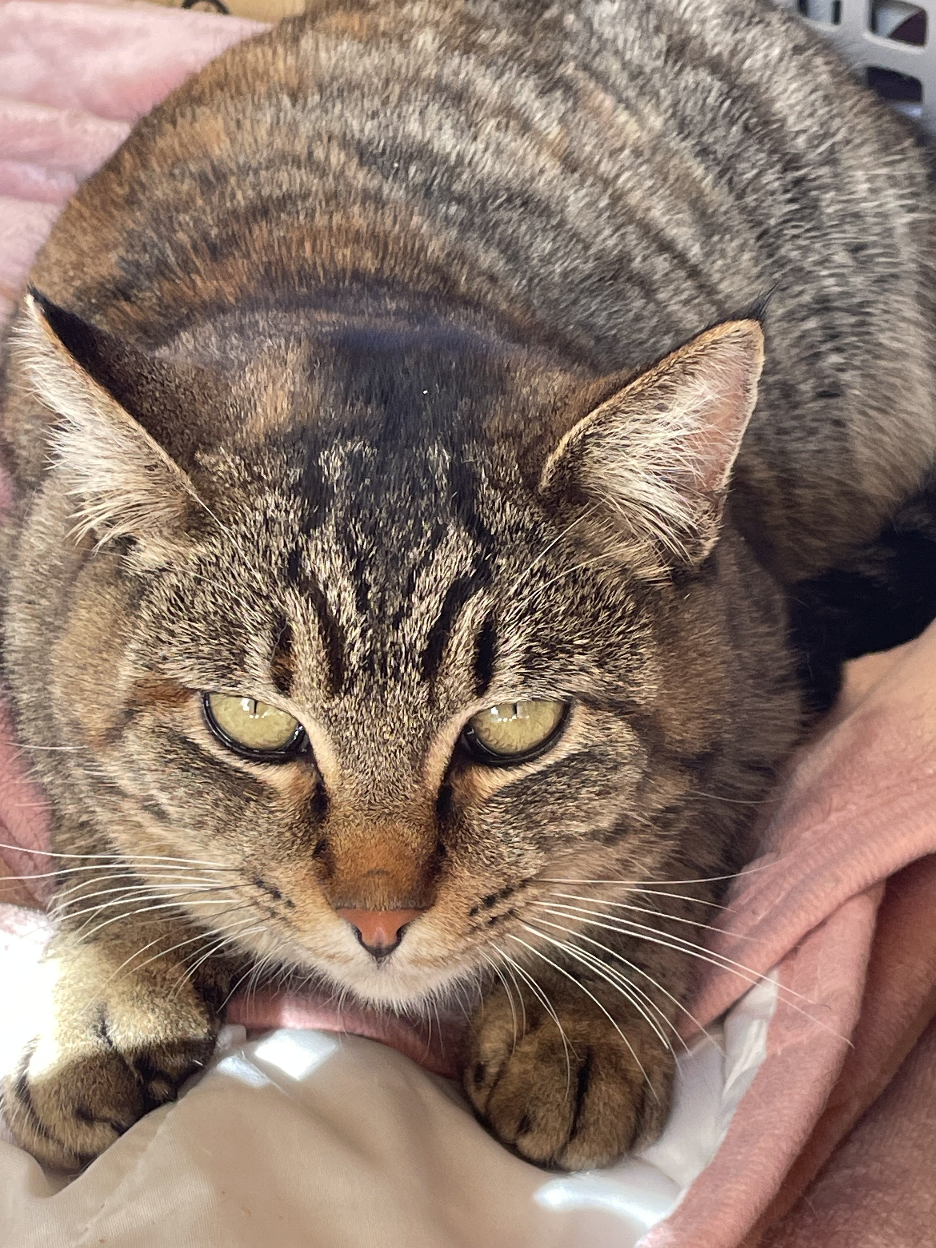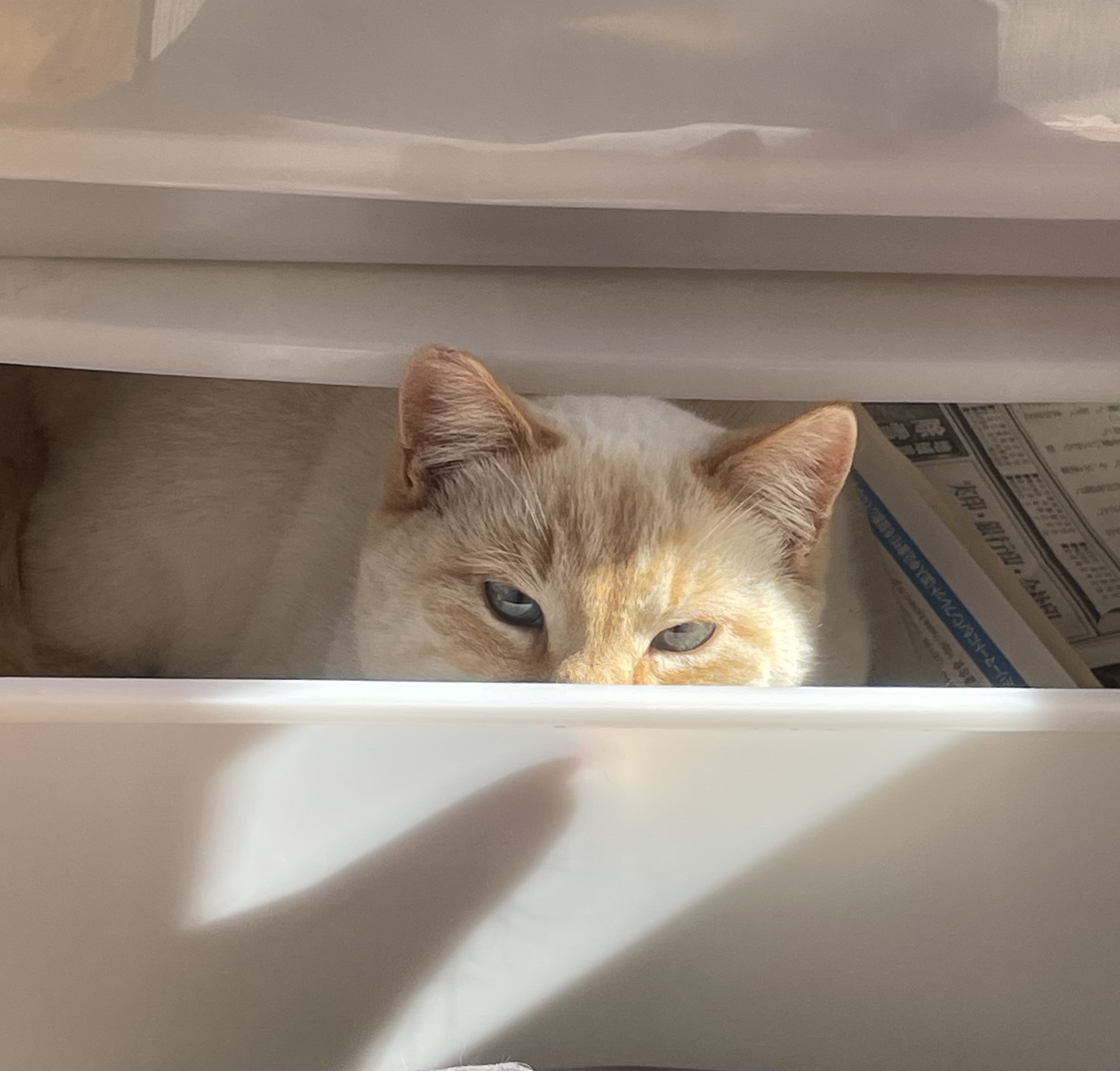 けど、追い出すのは可哀想で…しばらくの間、お家の中でひとときの暖を(∩ˊ꒳ˋ∩)提供しました♡新聞紙の入ったケースに入って日向ぼっこしてるモツくん(*´艸`)