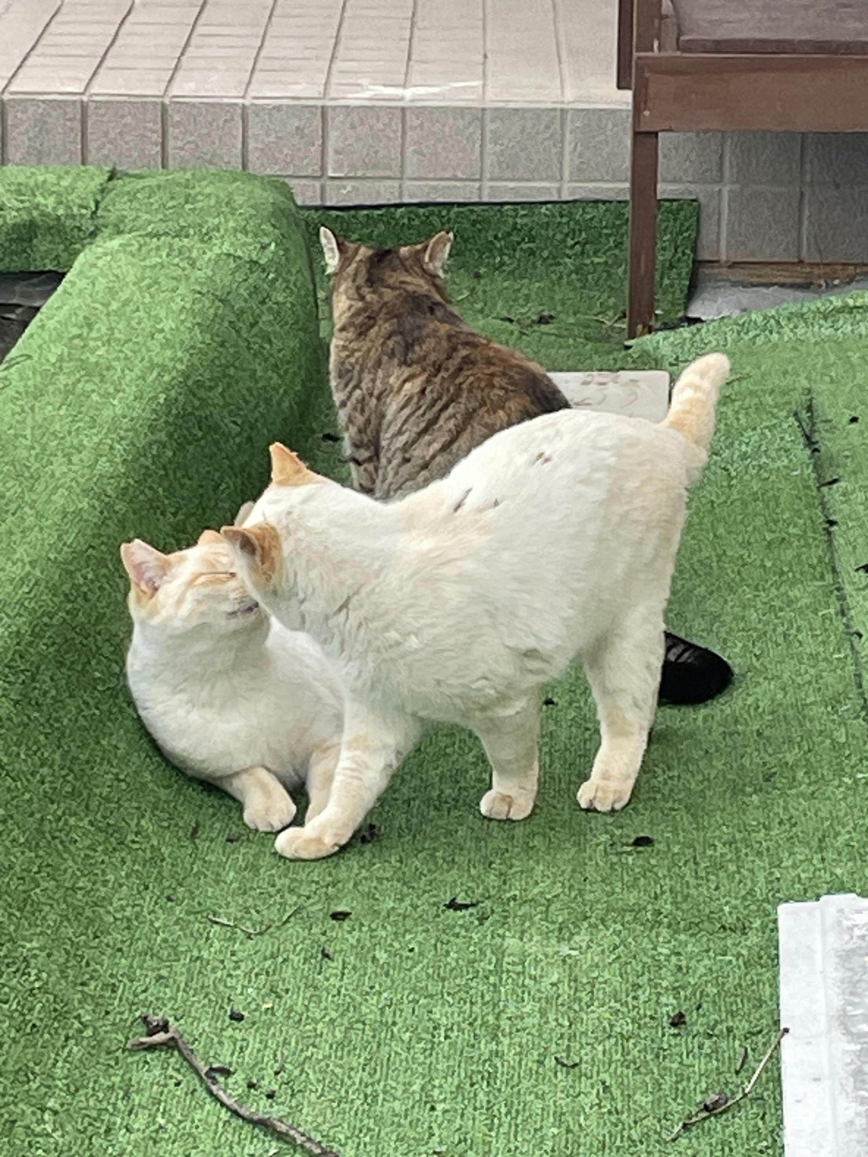 お隣さんのお家の玄関先でビビちゃんモツくんモチくんくつろいでます˙˚ 𓆩 (*´▽`*)✿𓆪 ˚˙