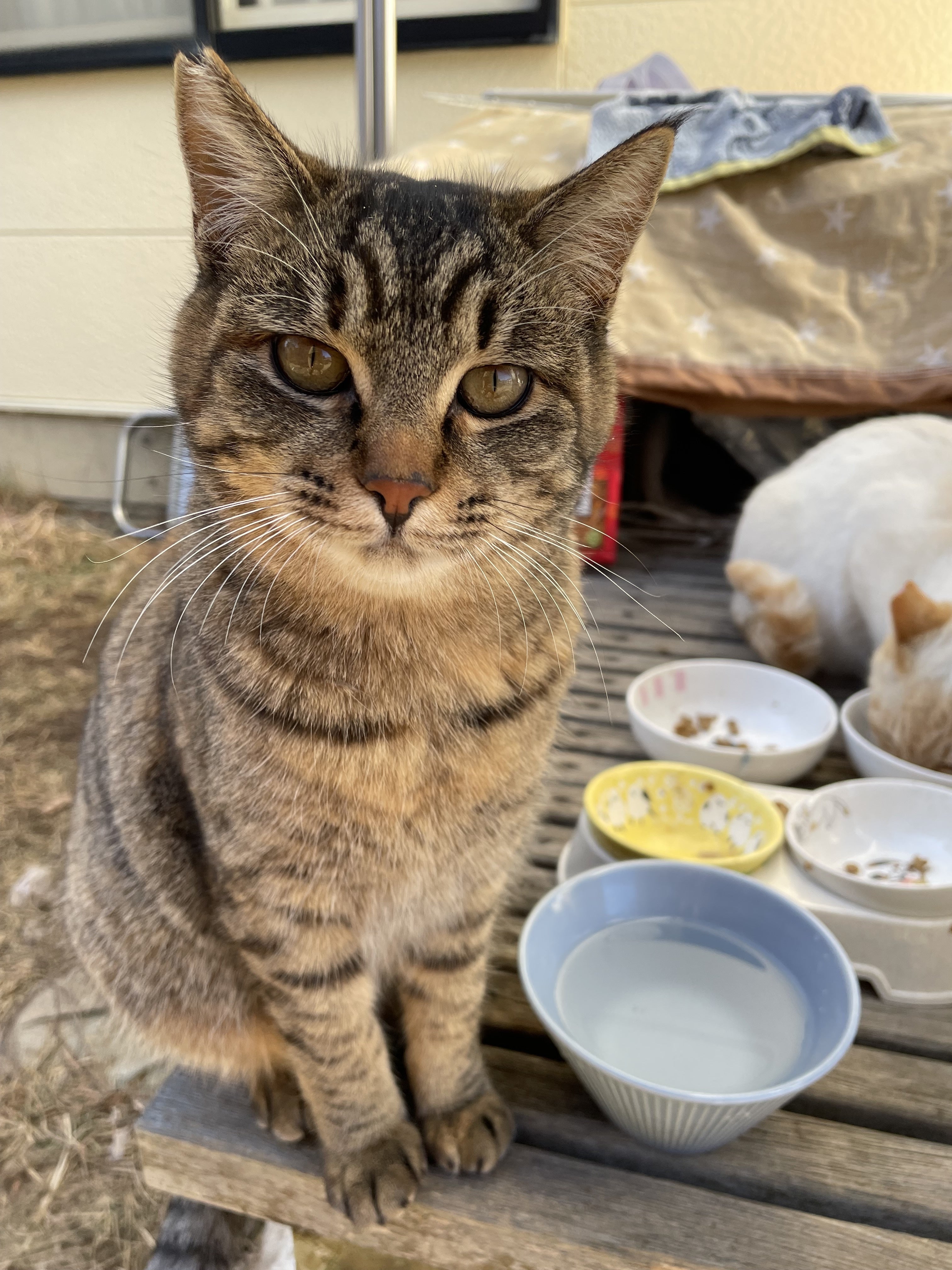 温かいご支援ありがとうございます( .ˬ.)" ( *ノ_ _)ノノ╮*_ _)╮アリガタヤー1月9日朝の気温マイナス8度でしたー(*」´□`)」寒いけどビビちゃんもモツくんもモチくんもクリくんもチャトくんも力いっぱい生きています!( * ॑꒳ ॑*)ノ⸝⋆✧☀ ←ビビちゃんバッチリカメラ目線ですご支援してくださった皆様への熱い視線のようですね!ෆ( * ॑꒳ ॑*)⸝ᵗʱᵃᵑᵏᵧₒᵤとのことでしょうか(( ੭˙ᗜ˙)੭ ビビちゃん(左)、モツくん(真ん中)、モチくんです(右)。皆同じお母さんから産まれたのですが、ビビちゃんはお父さん似で、モツくんはお母さんにそっくりなんですが、モチくんはお母さんとお父さんに似てる気がします。よく見ると皆それぞれに違いがあって人間と変わらないんだな〜って気付かされます(*´艸`)最近たまにビビちゃんは、すぐにご飯を食べない時があるのですが、撫でてあげるとよく食べるのです。安心するのでしょうかね?( *´꒳` )️健気な子です。モチくんはなぜか自分のご飯の器にご飯が入っていてもモツくんやビビちゃん、クリちゃんのご飯を横取ろうとします…( ˊᵕˋ ;)モツくんはとても好奇心の旺盛で肝の据わった子って感じがします。⤵︎⤵︎