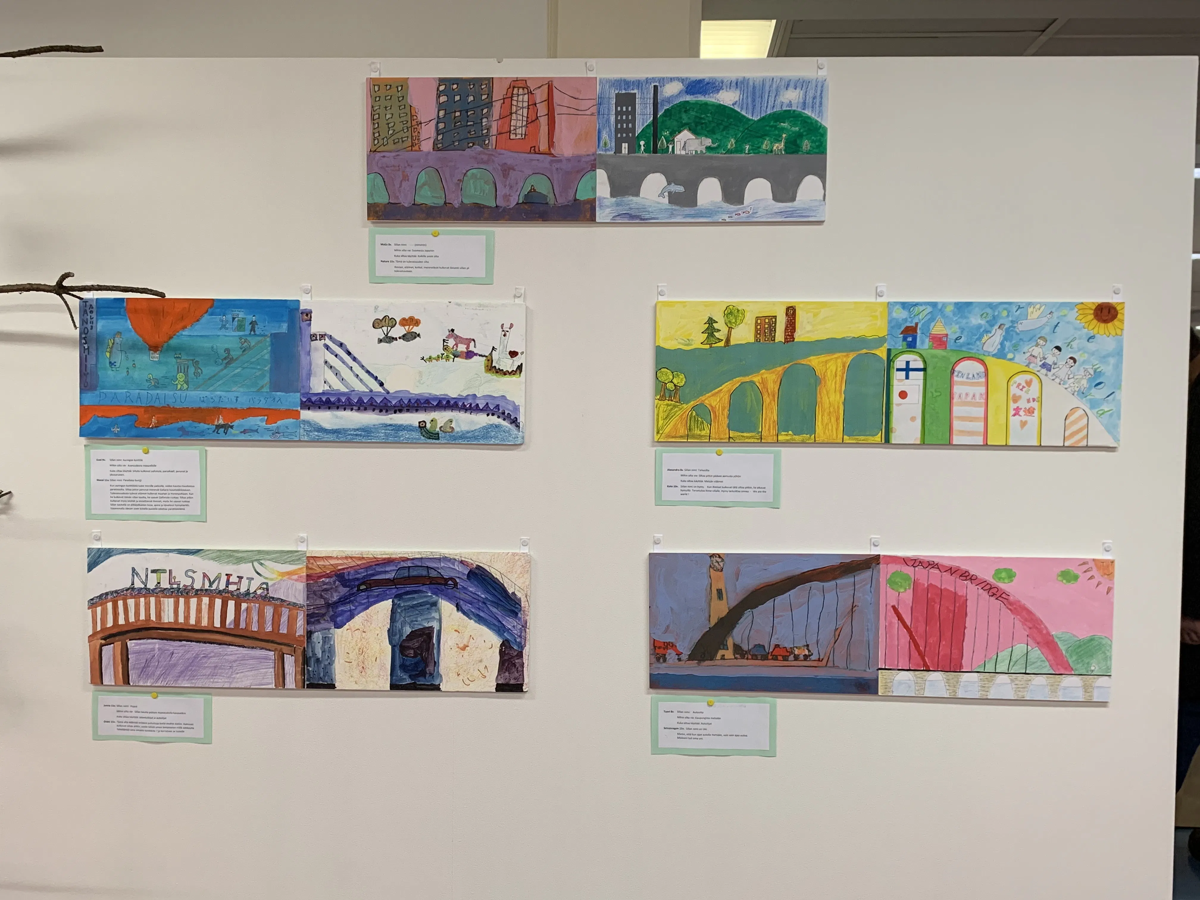 日本の子どもたちが、ウクライナの子どもたち・ポーランドの子どもたちを想い、描いた「橋」の半分を85番小学校の子どもたちに届けます。