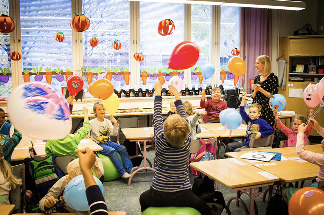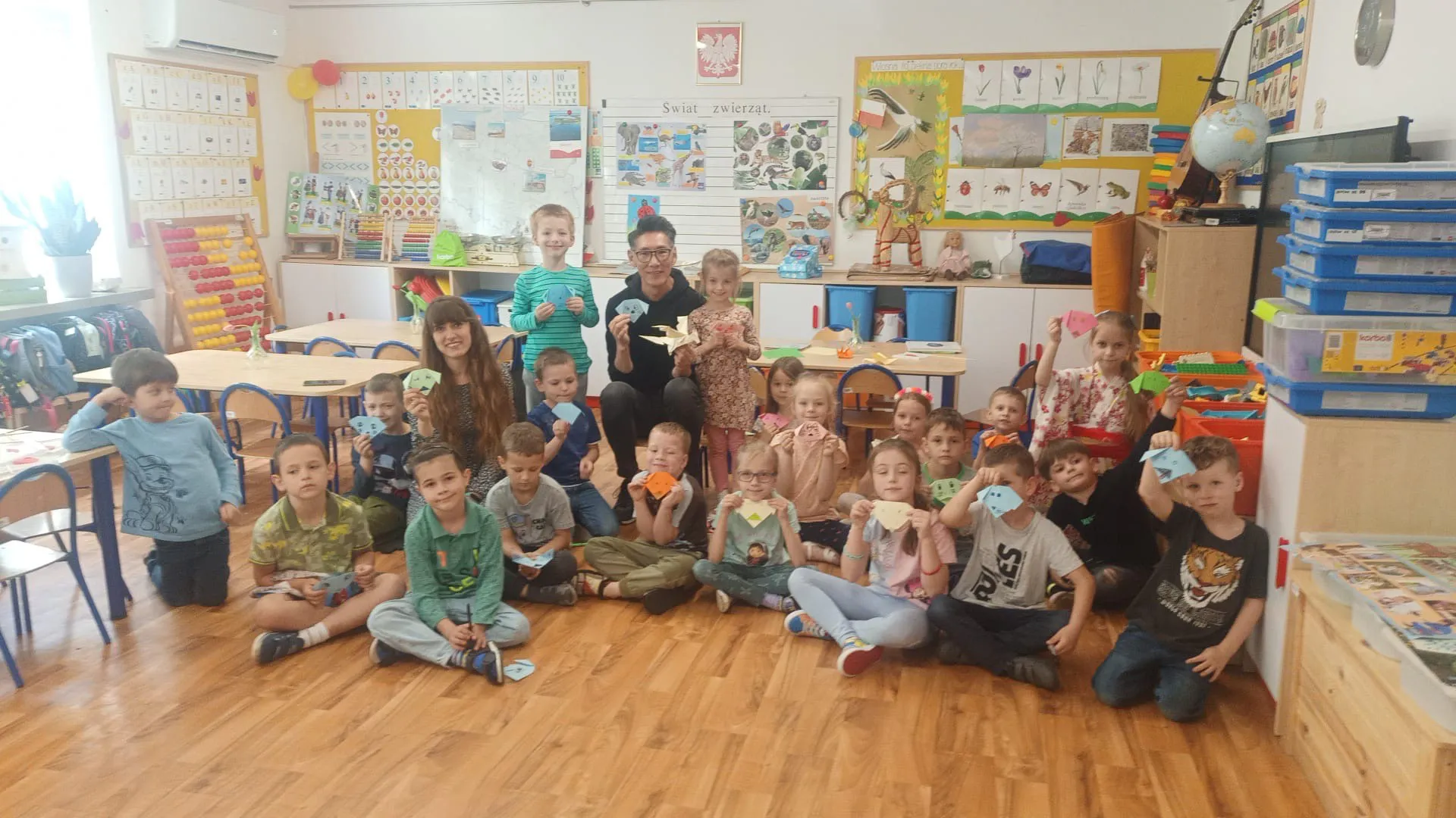ポーランド語を集中的に学ぶ低学年対象の「準備教室」では、教科書を使った授業でなく、絵を描いたり歌たりしながら、自然な形で言葉を学びます。