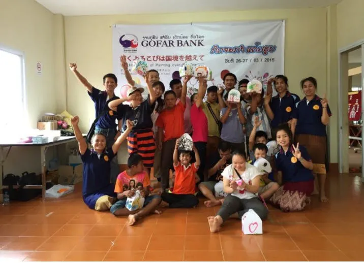ラオス・日本国交樹立60周年事業としてビエンチャンの障がい児童施設にて、子どもたちに画材と絵を描くよろこびを届けました。