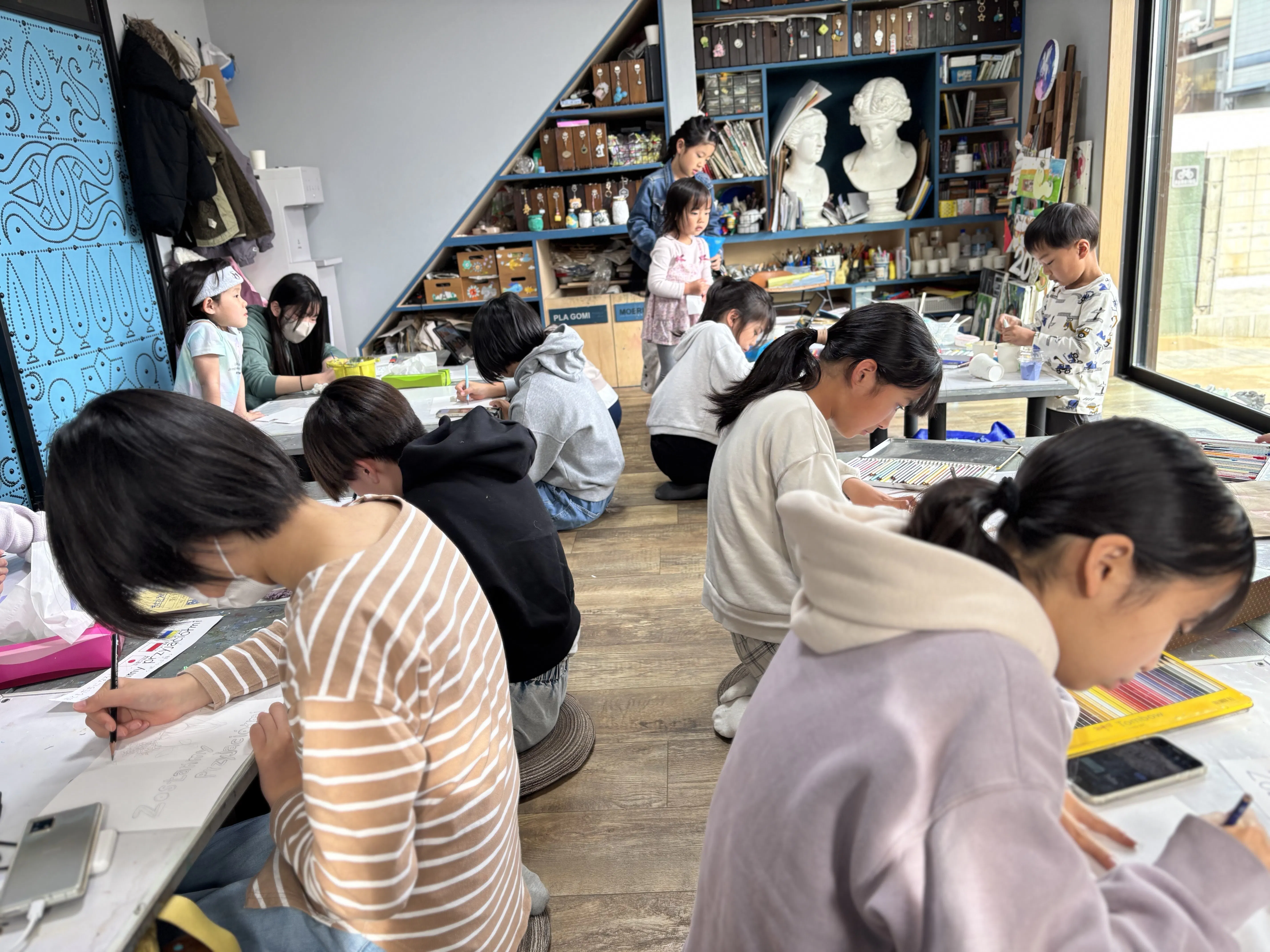 私の中で、もう両手では抱え切れないほど大きくなったよろこびをどうしても子どもたちに伝えたいと想い、大阪の小さな絵画教室で子どもたちと一緒に絵を描く日々を過ごしています。
