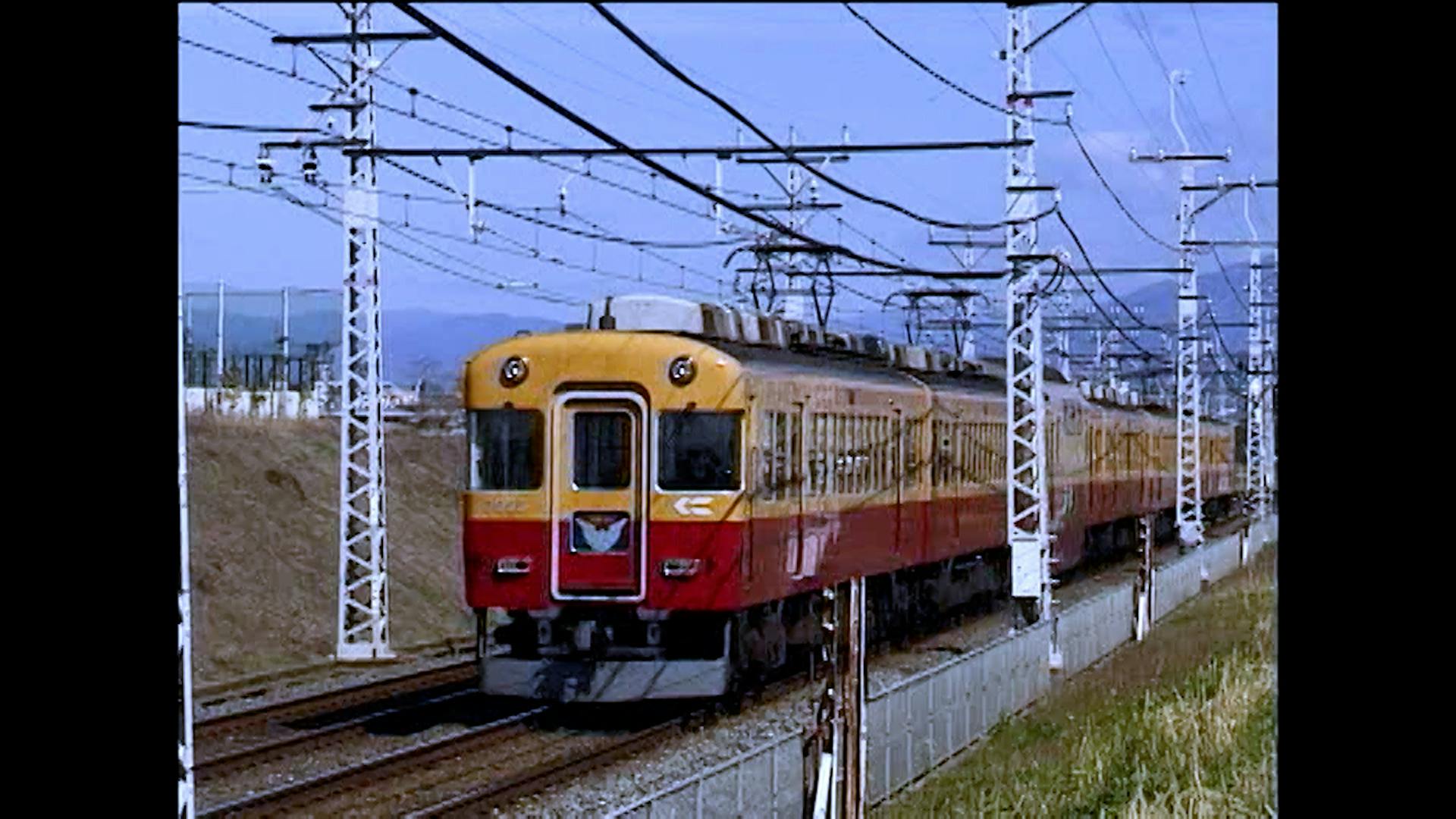 1990年代前半のアナログビデオカメラの撮影による前作から数年後だが、この時期に色々な鉄道風景が目まぐるしく姿を変えていった時期でもありました。ちょうど私は阪急系の撮影所・宝塚映像に勤めていたサラリーマン時代。その時関わった「FOREVER MALOON」という阪急のビデオ作品の撮影のために当時の川崎重工の兵庫工場に伺った時のことです。構内に何やら見たことのないピカピカの車両が留置されていました。赤と濃い黄色のようなツートンカラーの2階建車両で、その上下の窓の間に何やら雅な行列の様子を描いたイラストがありました。そう、それが京阪8000系のダブルデッカーとの初めての出会いでした。