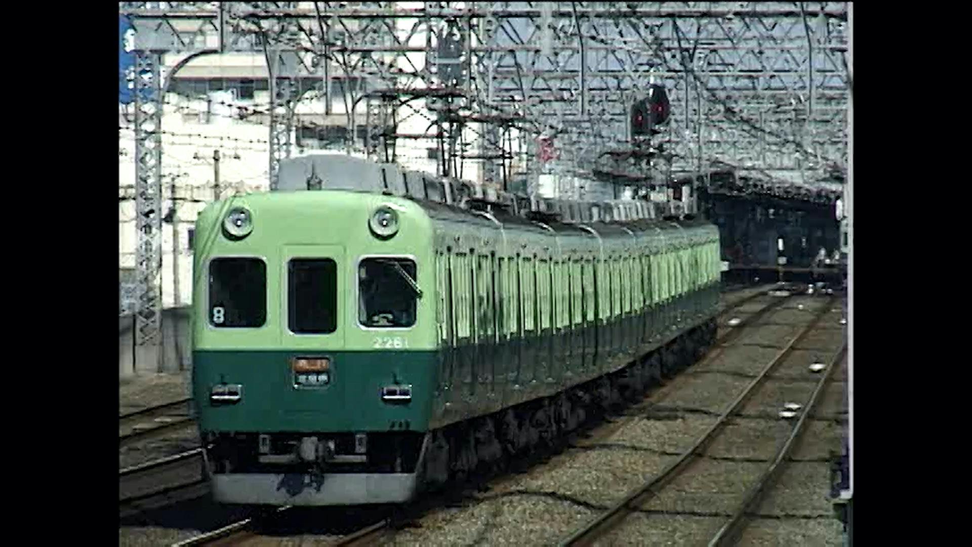 学生時代の一時期、河内地方にある某大学で教材を作るお手伝いをしていたことがある。阪急京都線沿線の私はその時、自転車で枚方公園駅まで出て、そこから京阪本線〜大阪環状線を経由するルートで通っていた。そしたら朝のラッシュ時に2〜3分の間隔で淀屋橋行き準急が連発されているではないか。阪急ではあり得なかったこのダイヤにびっくり仰天した当時の印象が今も強く残っている。座席が収納された5000系の天井を眺めているうちに、わずかな時間で京橋に到着。すっかり偉大なる複々線のとりこになってしまった私であった。「よみがえる20世紀の列車たち第2章4私鉄Ⅰ」の編集作業を進めながら、そんな時代の京阪の鉄道風景を思い出していた。