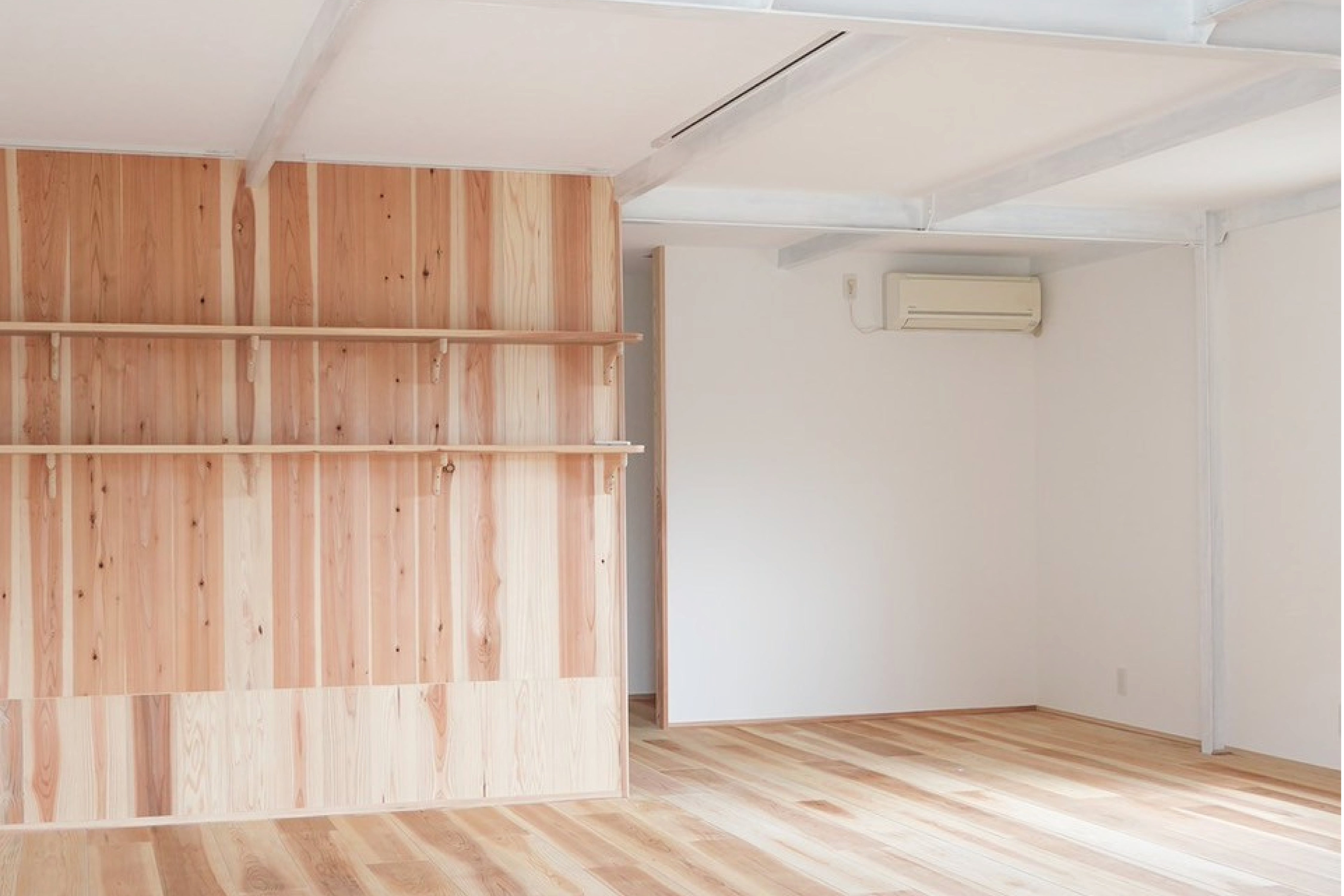 また今回、全てが新しい材料ではなく一部に廃棄予定の木材や古道具を使用しています。木材は床や壁の下地材として。古道具はレジカウンター・テーブルに使用することにしました。