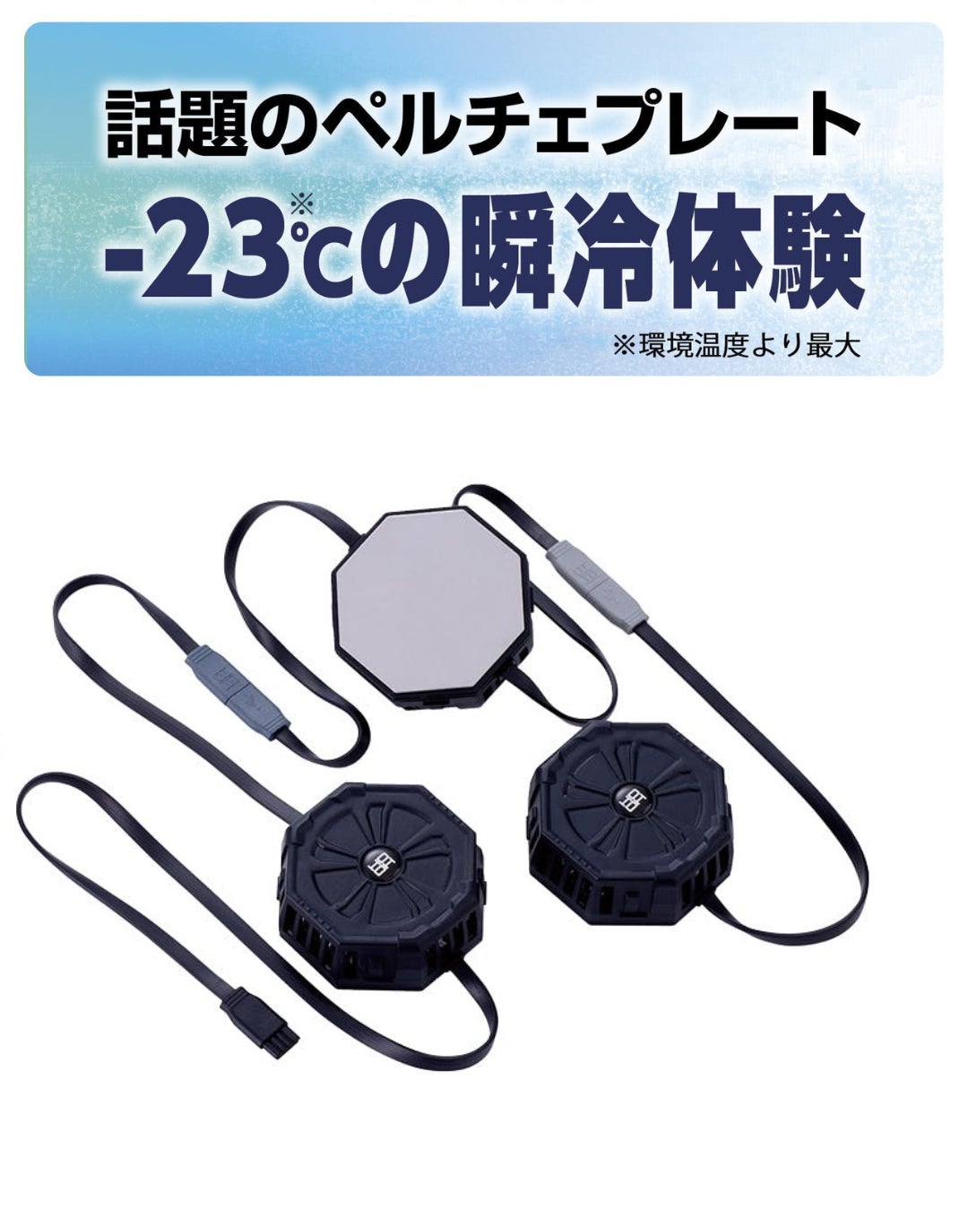 今回の「ペルチェデバイス」は、そのペルチェ素子を採用し、スイッチを入れてわずか数秒で瞬間冷却。