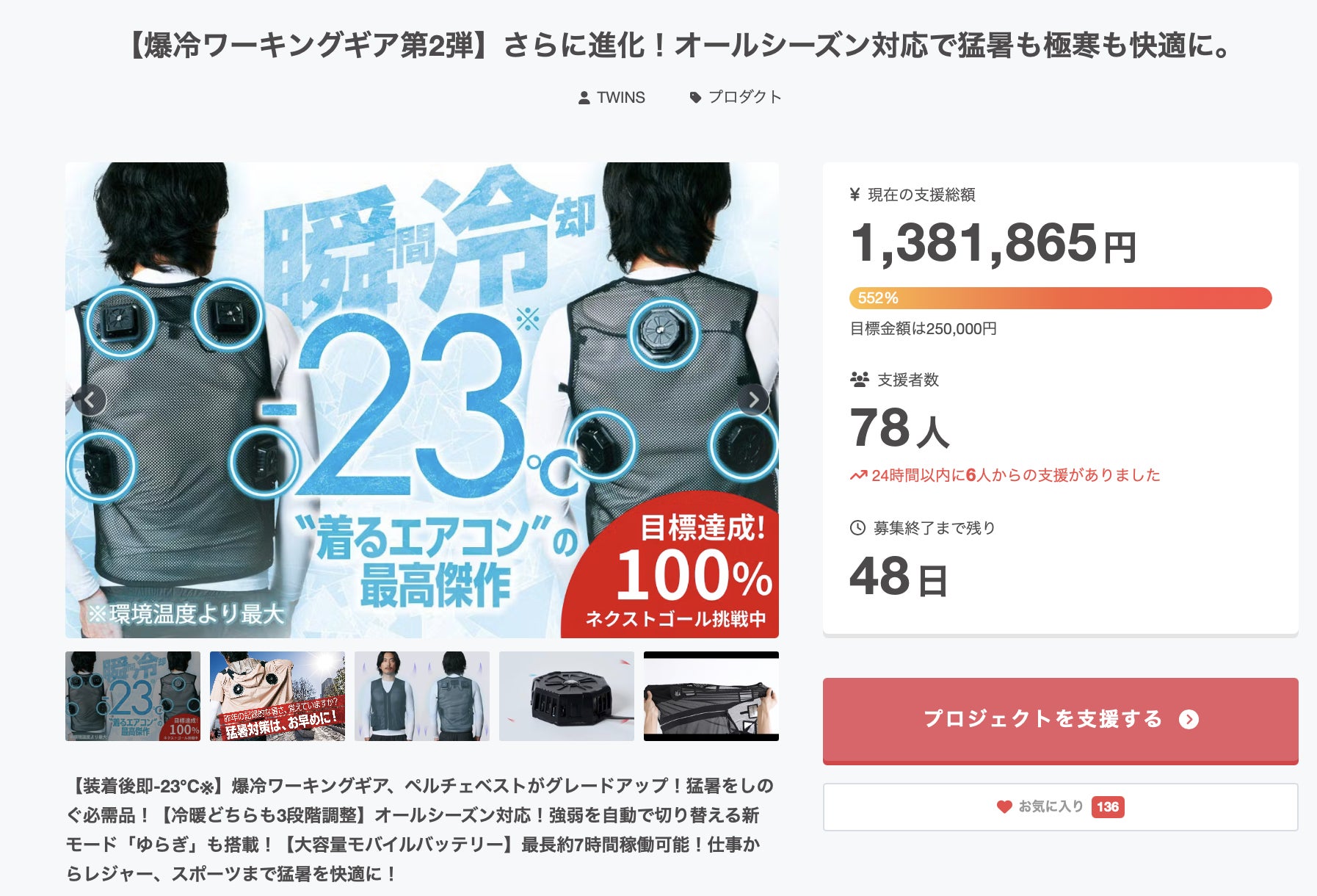 着るエアコン【爆冷ワーキングギア第2弾】のクラウドファンディングに、たくさんのご支援とお気に入り登録ありがとうございます!