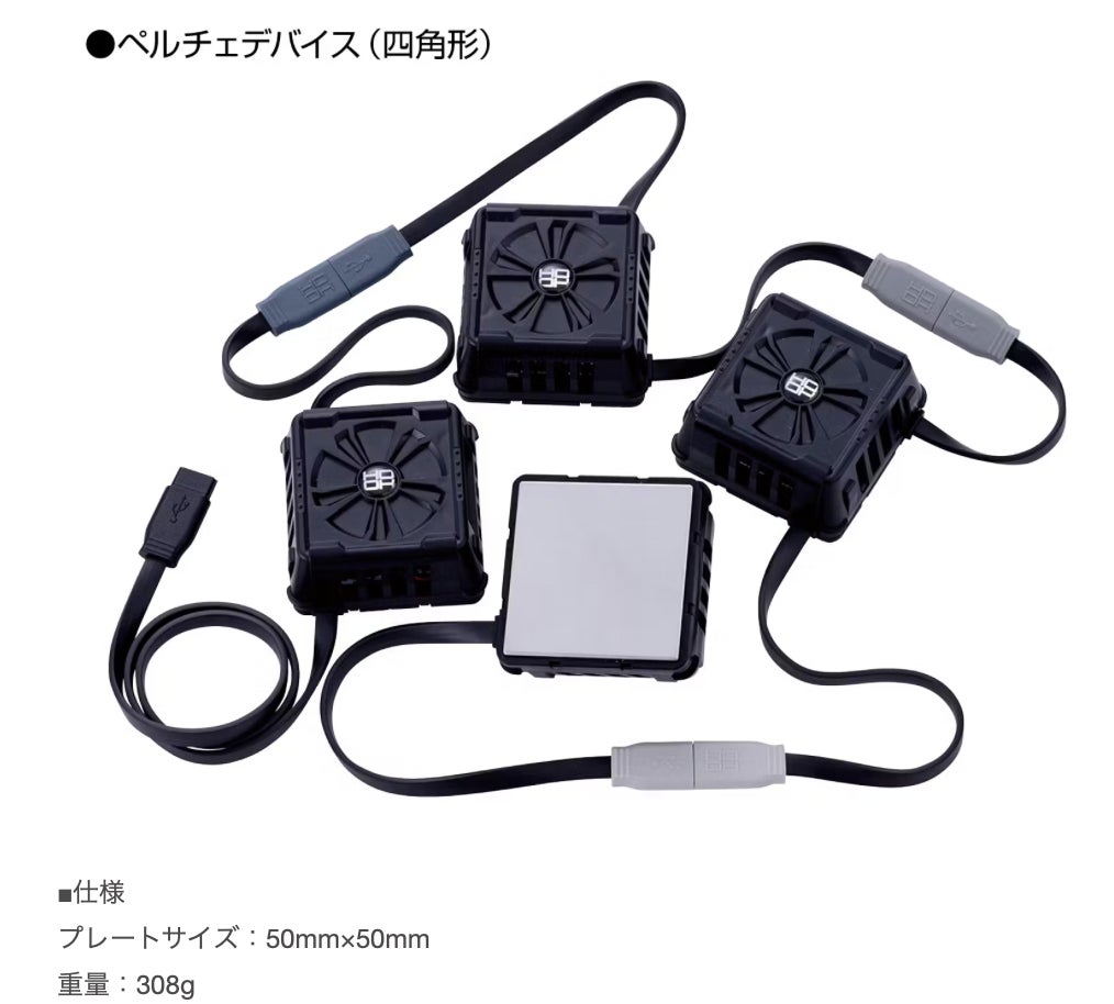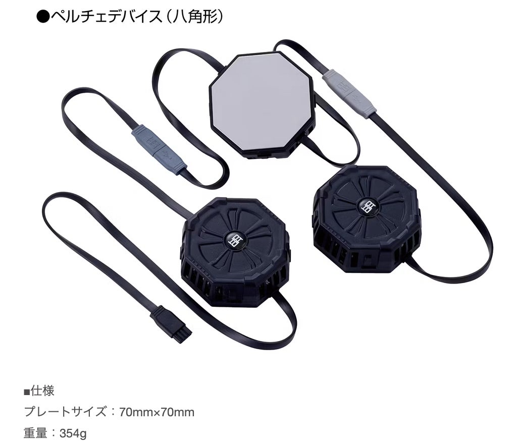 5cm四方のペルチェプレートを4ヵ所に配置。両わき腹あたりにもプレートがあるため、体全体をくまなく冷やすことが可能です。