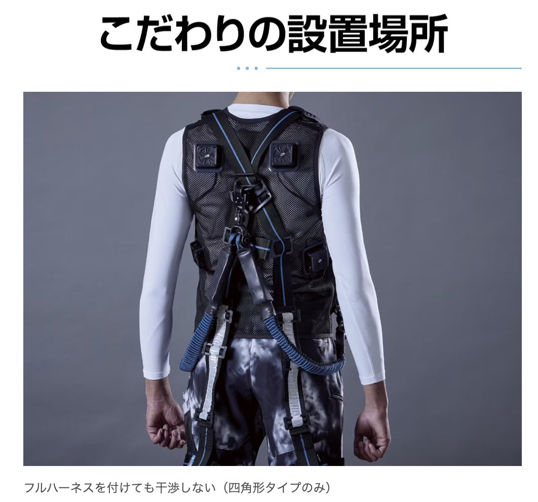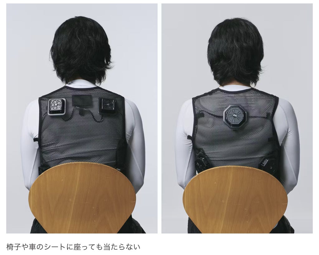 着る扇風機で冷気を循環させると更に快適に!今までの暑さはなんだったのかと、もう戻れなくなること間違いありません。